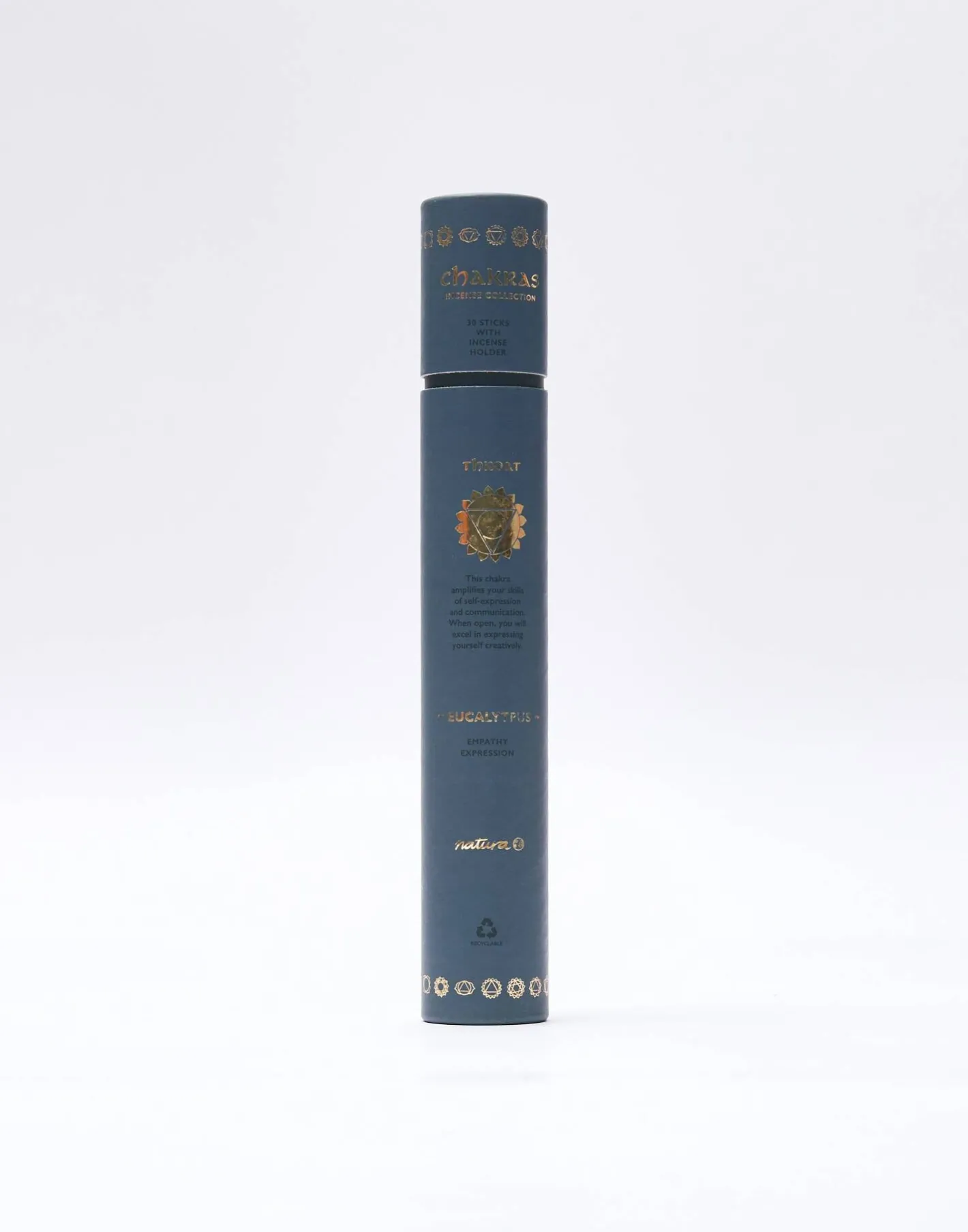 Garganta: eucalipto (azul). Este chakra amplifica tus habilidades de autoexpresión y comunicación.