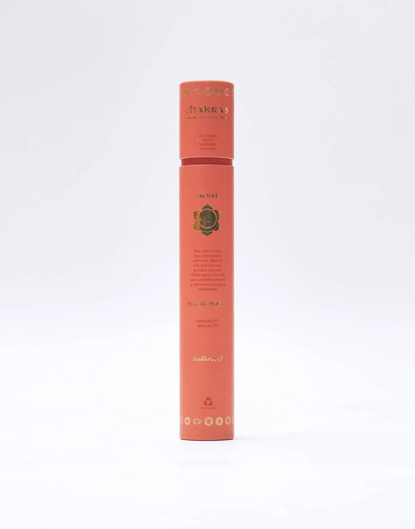 Sacro: ylang ylang (naranja). Este chakra rige tu conexión con tu ser físico y cómo te percibes a ti mismo/a.