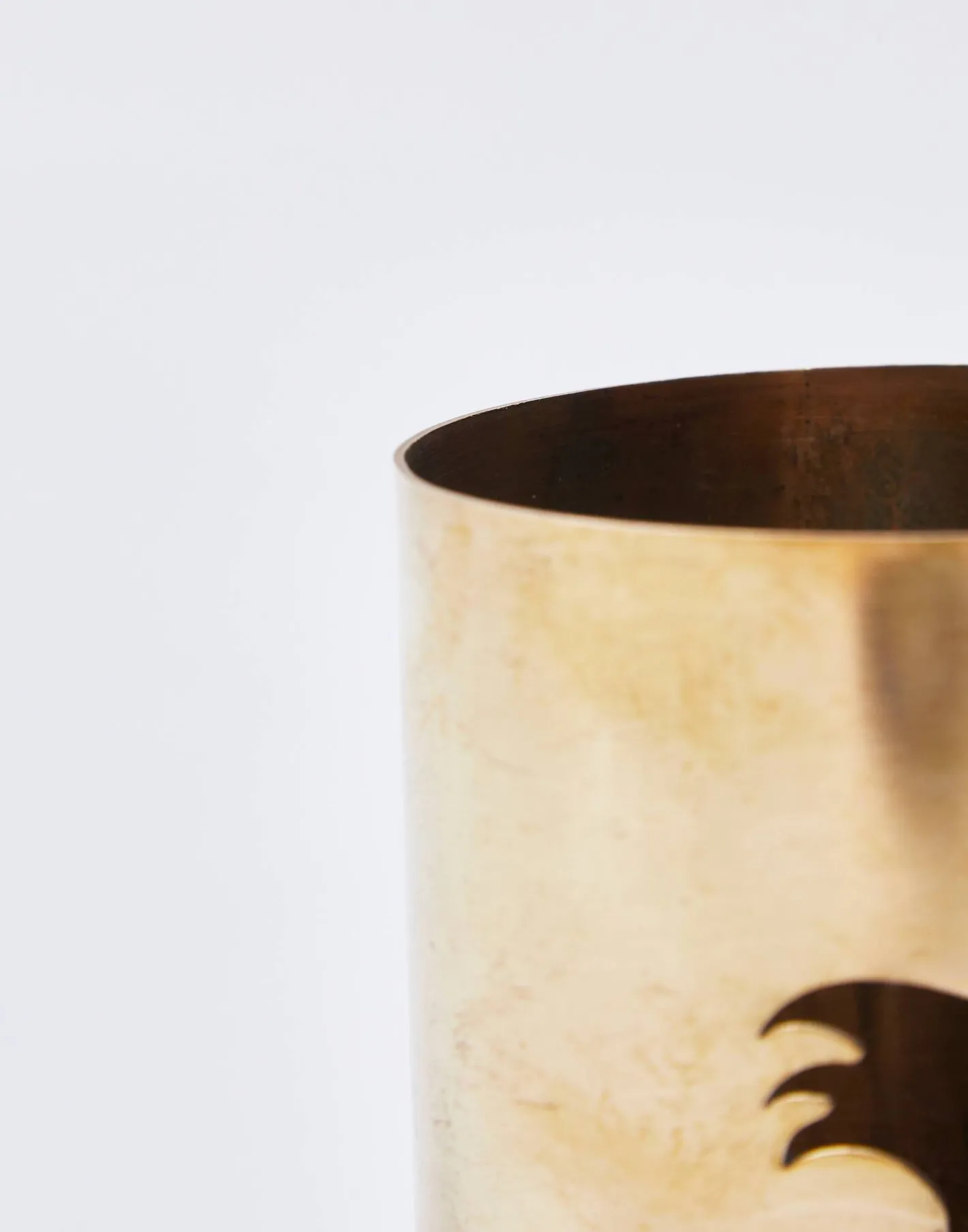 Quemador de latón con detalle de palmera troquelada. Utilízalo para ambientar tu hogar con la quema de esencias y aceites esenciales.