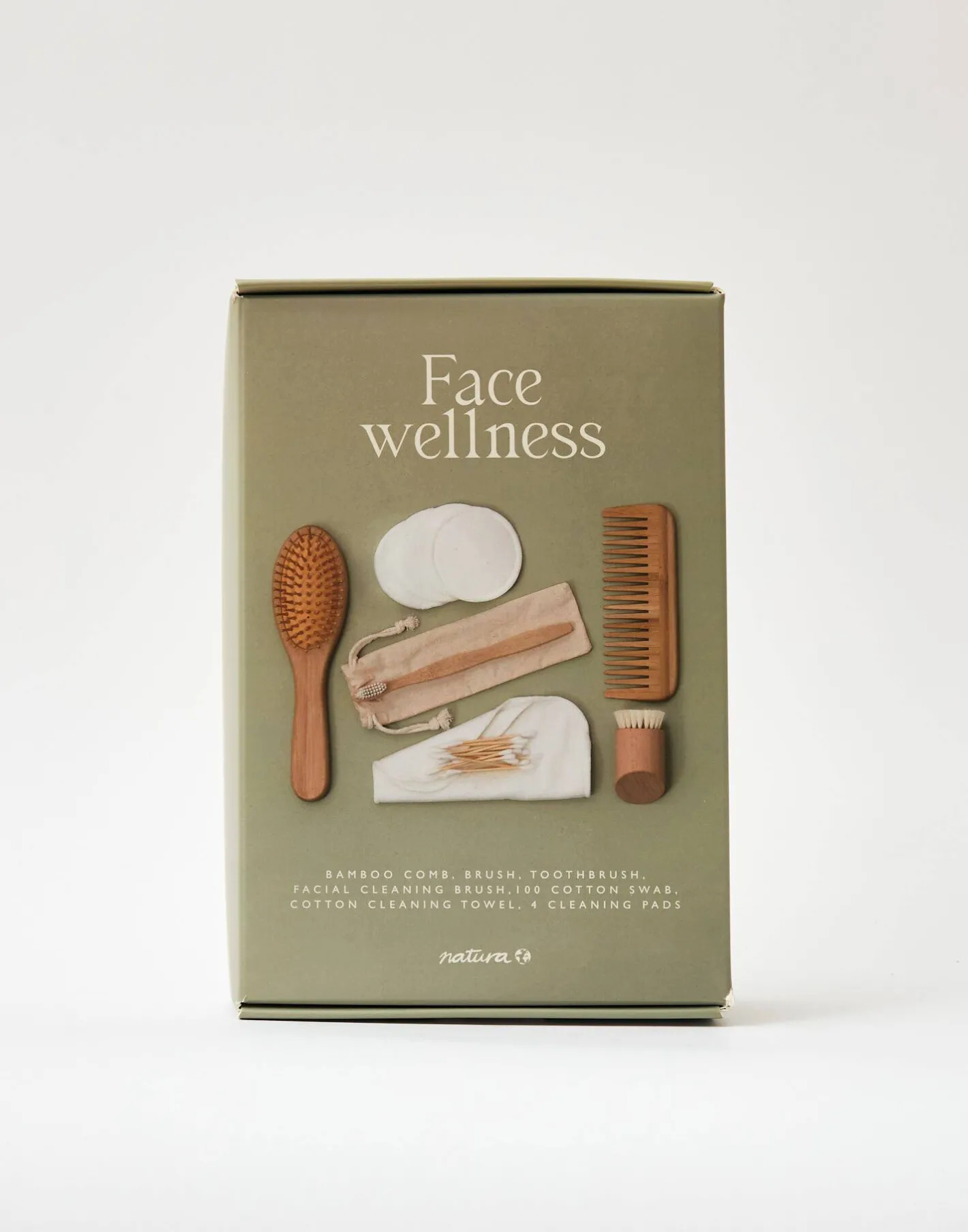 Kit de cuidado personal con 7 piezas para tus rutinas de limpieza y belleza. Todos sus elementos están hechos de bambú y otros materiales naturales.
