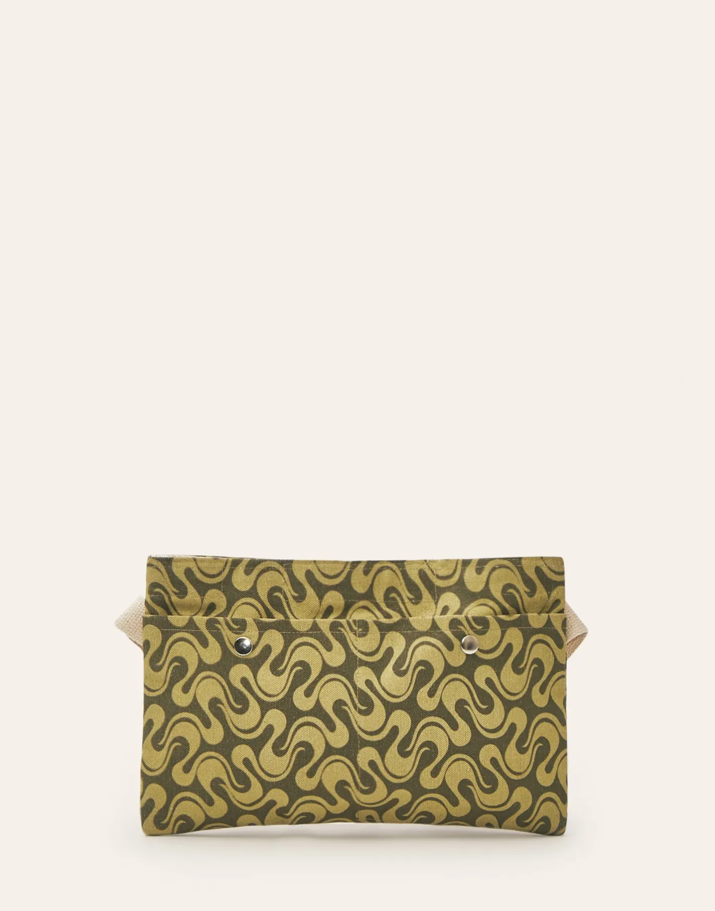 Bolso cruzado de algodón con cierre de clip y asa ajustable. Detalle de bolsillos en parte delantera y trasera con cierre de clip.