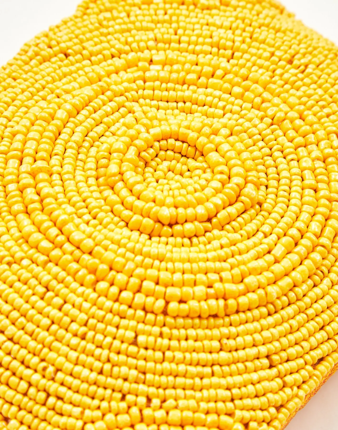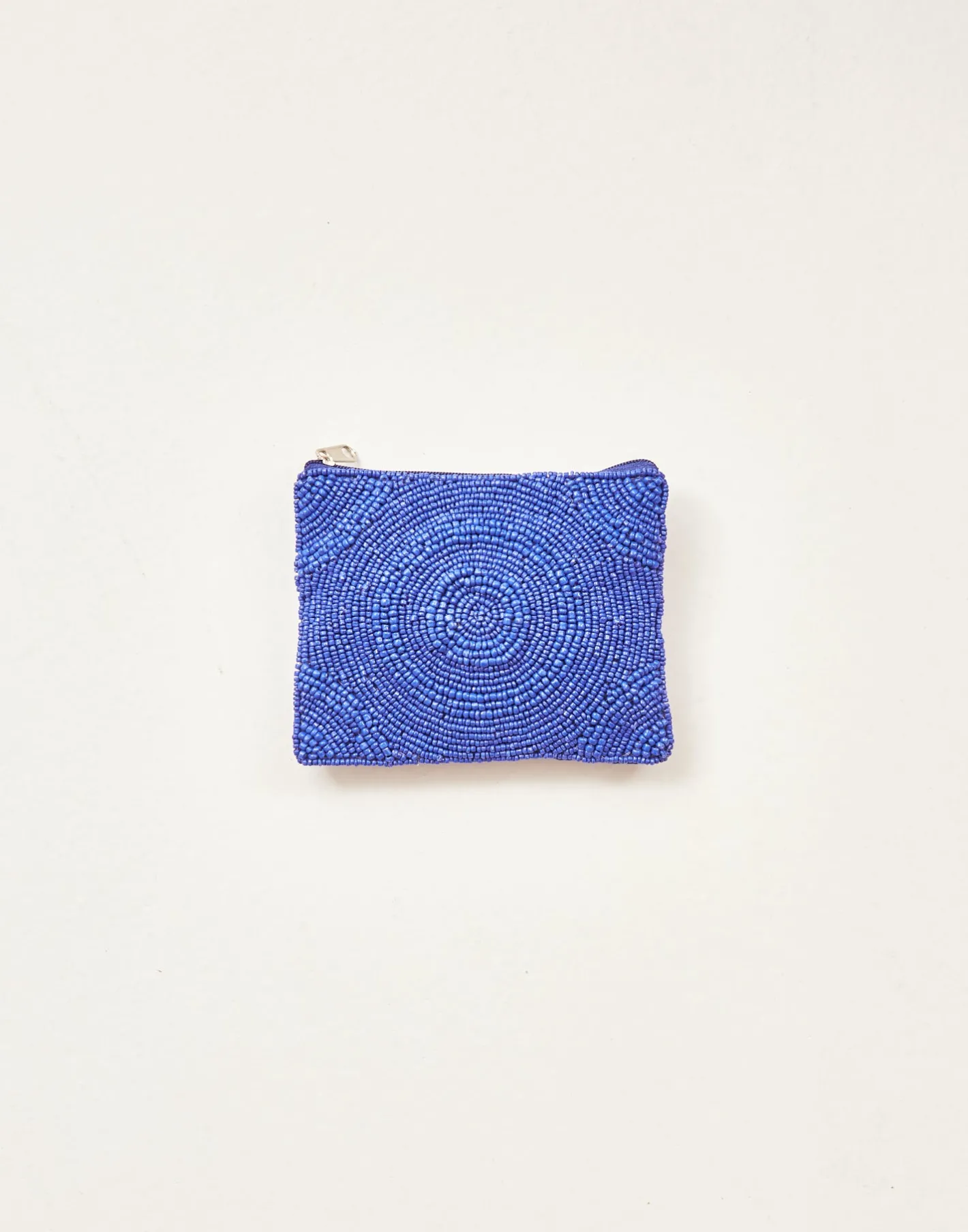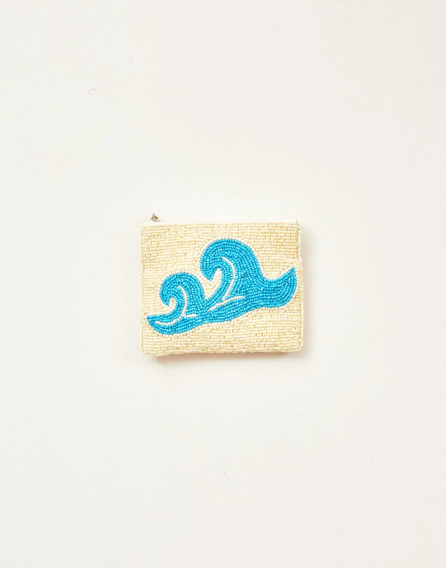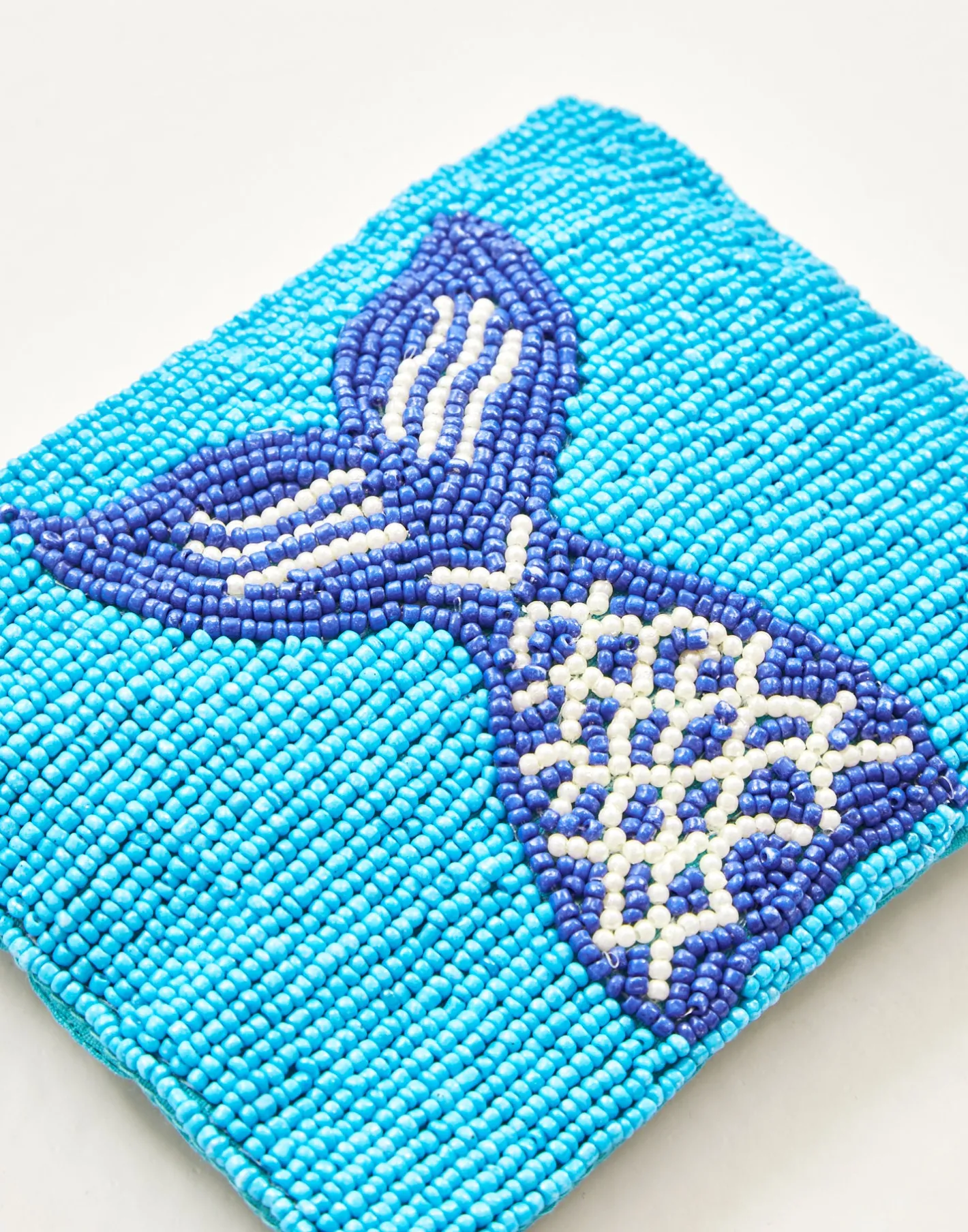 Pequeño neceser portatodo con cierre de cremallera superior. Parte frontal decorada con ilustraciones hechas con cuentas de vidrio.