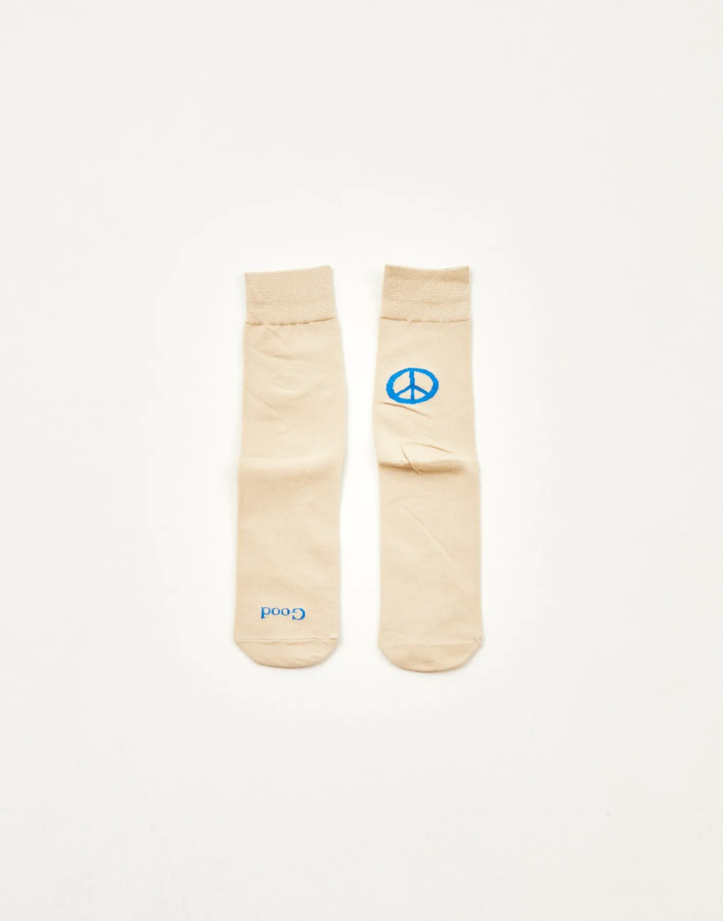 Par de calcetines de color con detalle del símbolo de la paz en la parte trasera.