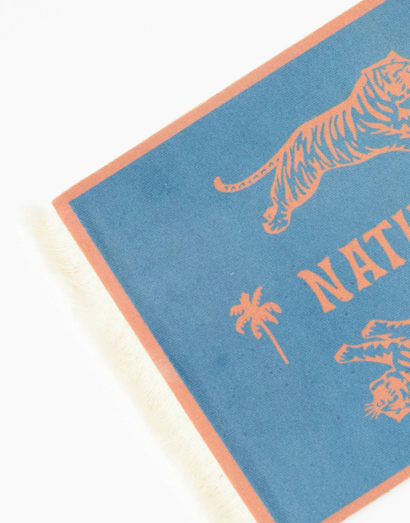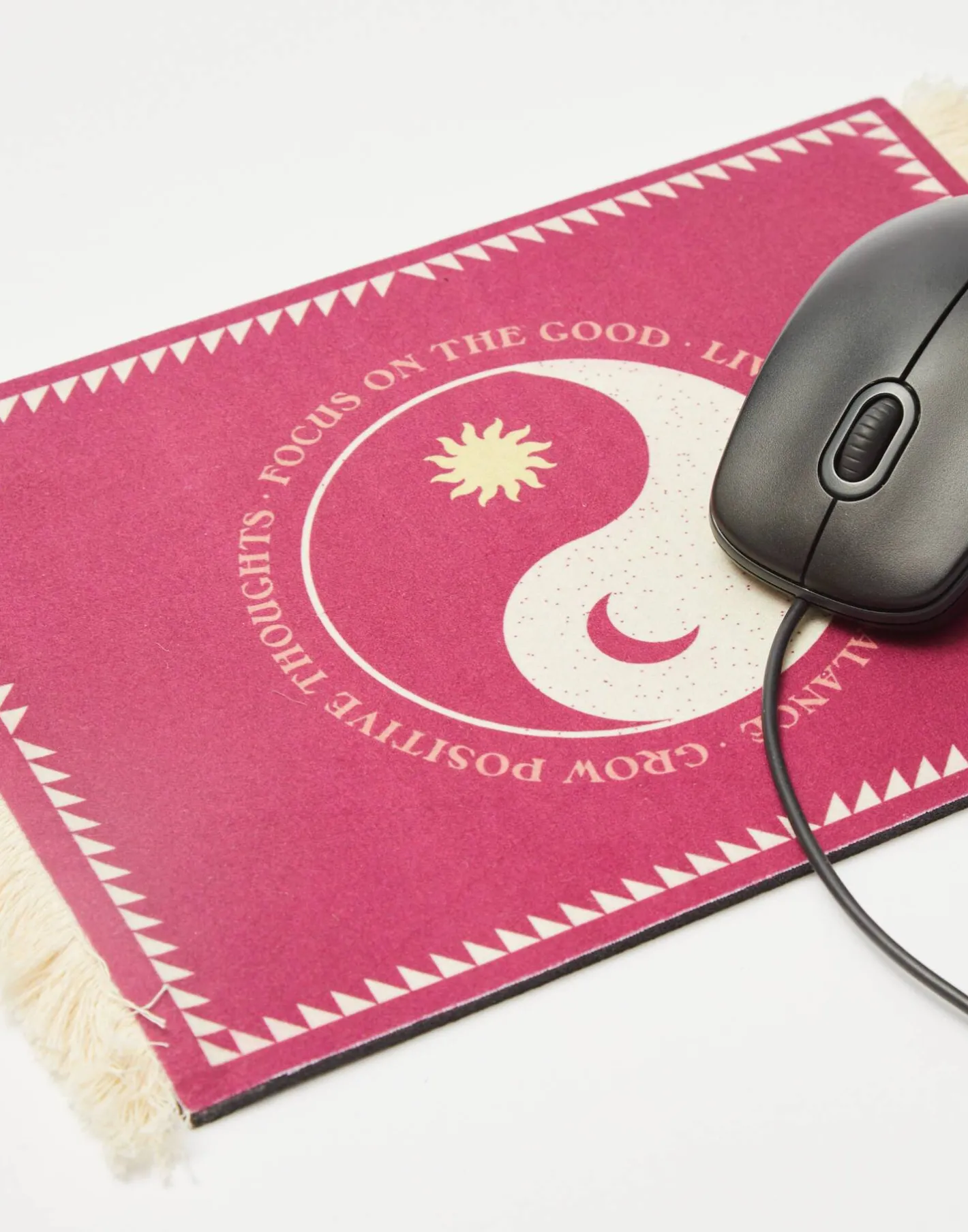 Alfombrilla para ratón en formato rectangular con terminaciones deshilachadas.