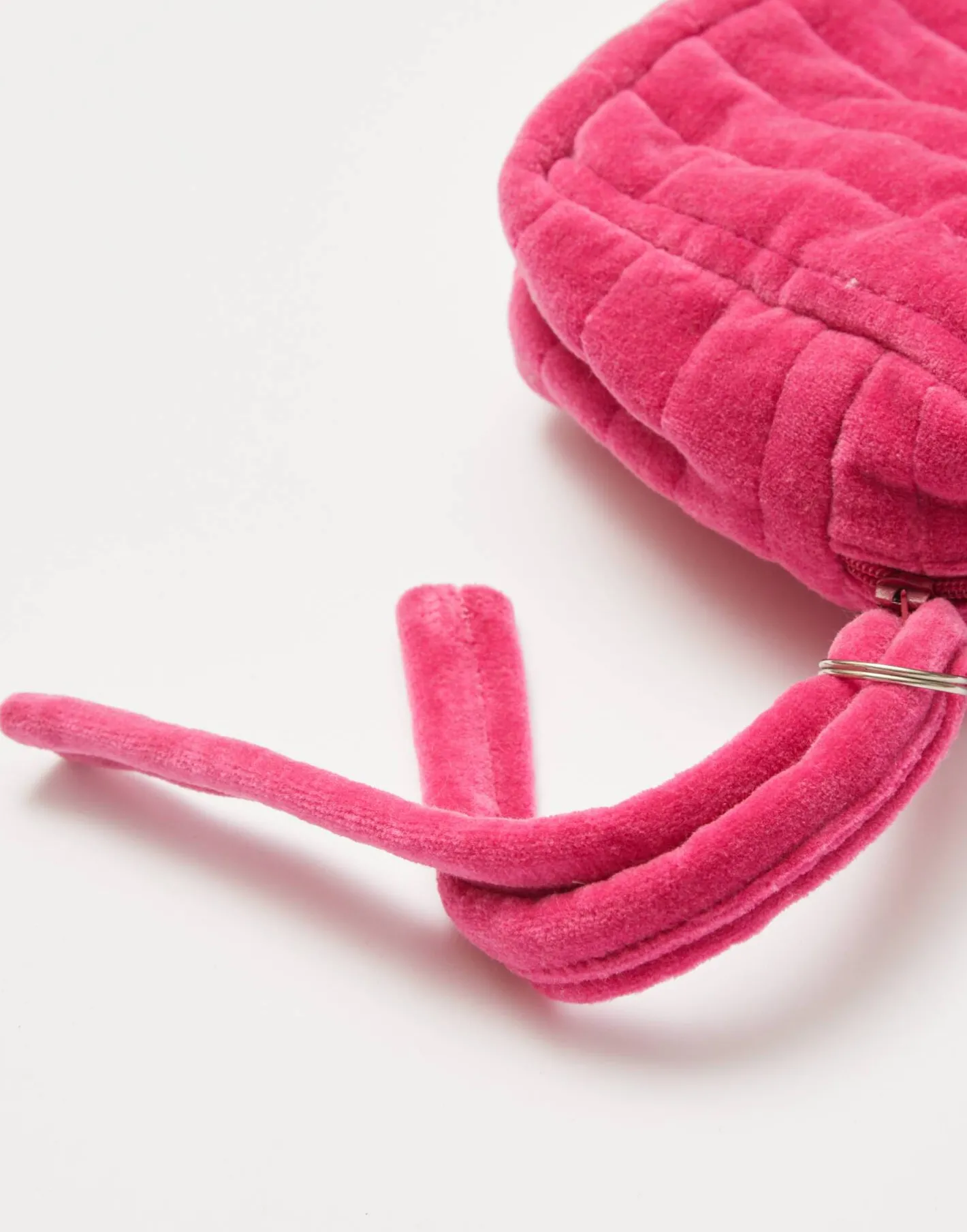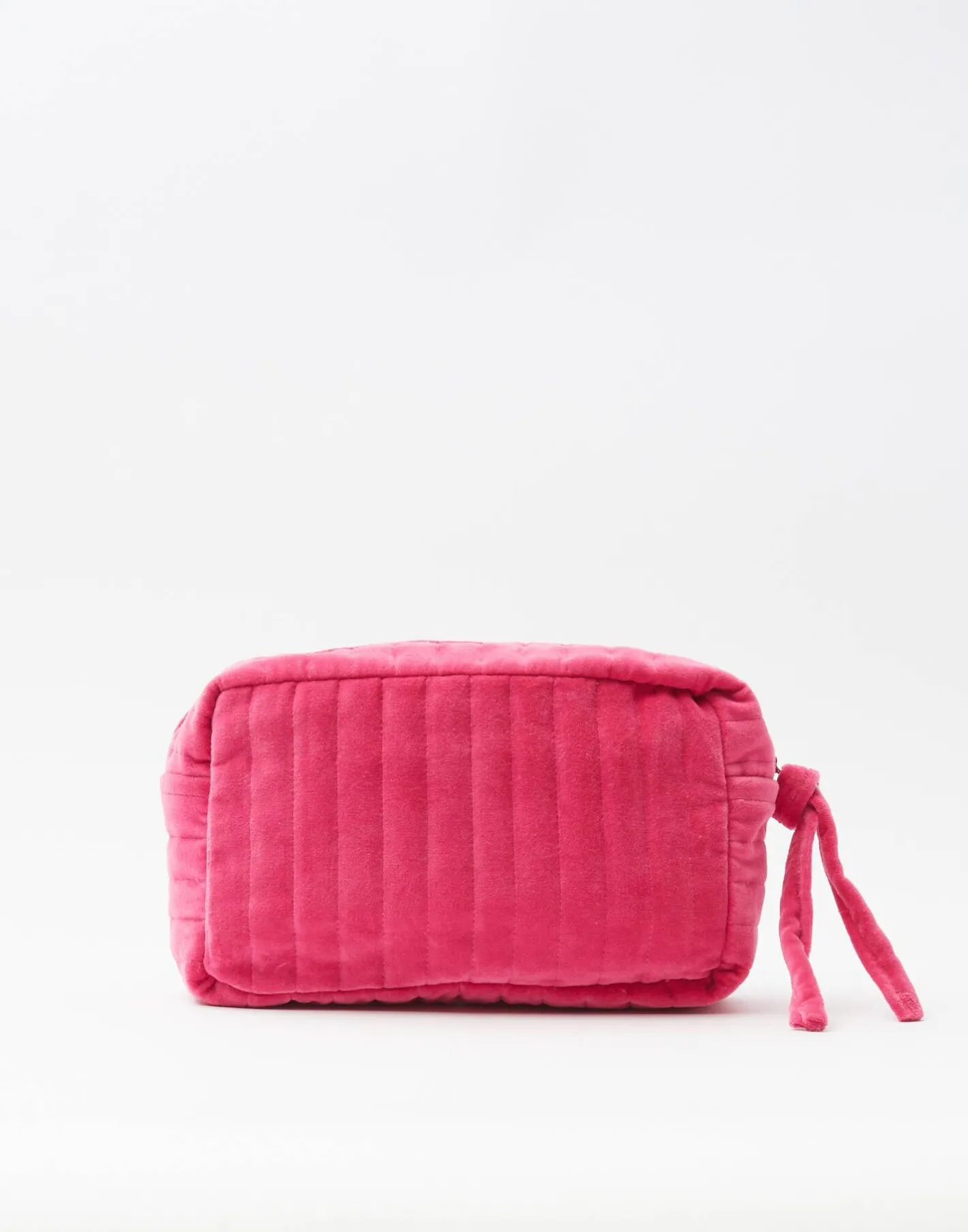 Neceser en tejido de terciopelo con apertura amplia y cierre de cremallera con detalle de tiras.