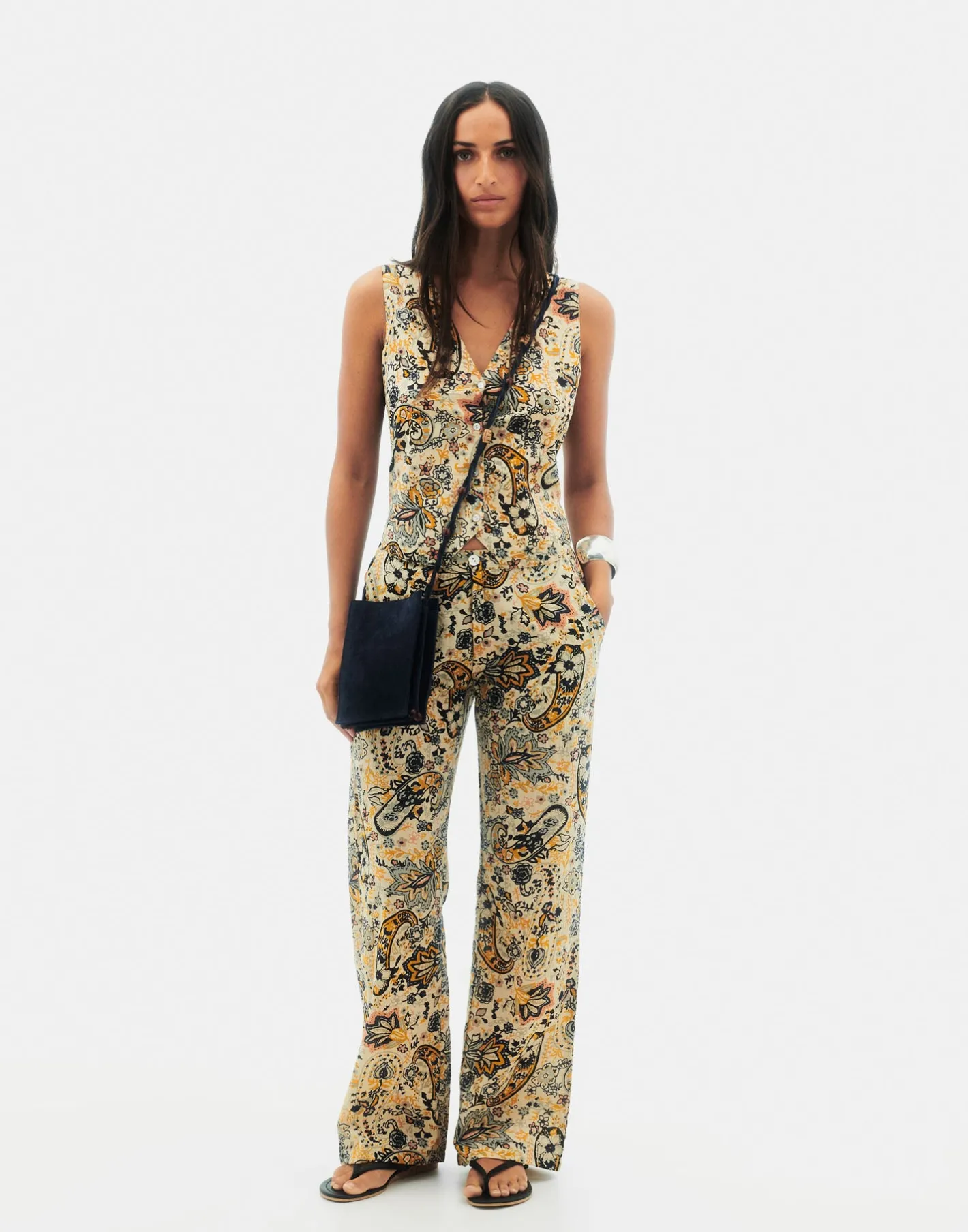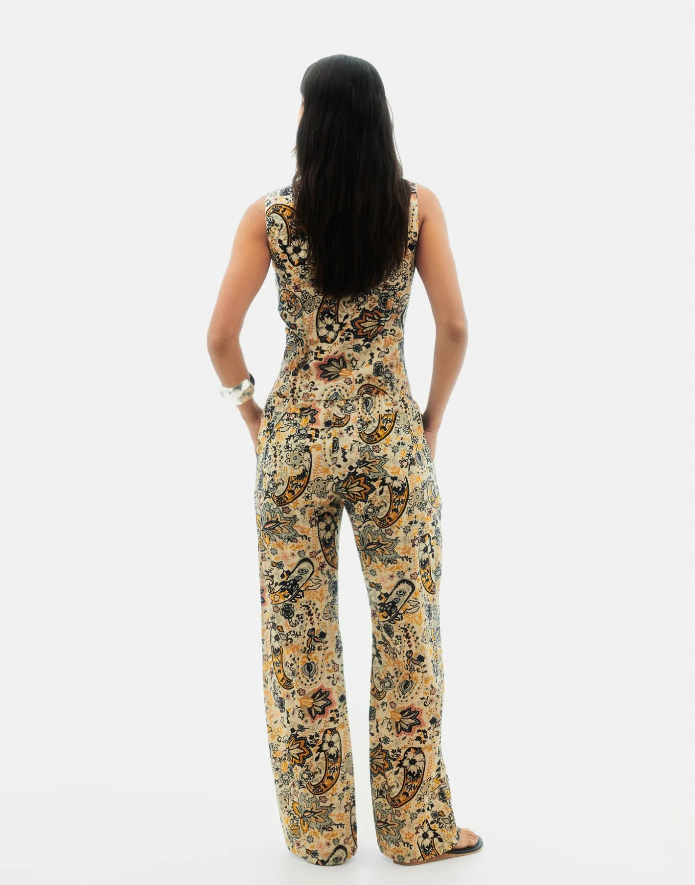 Pantalón estampado de corte recto, con cierre de botón y cremallera y bolsillos laterales.