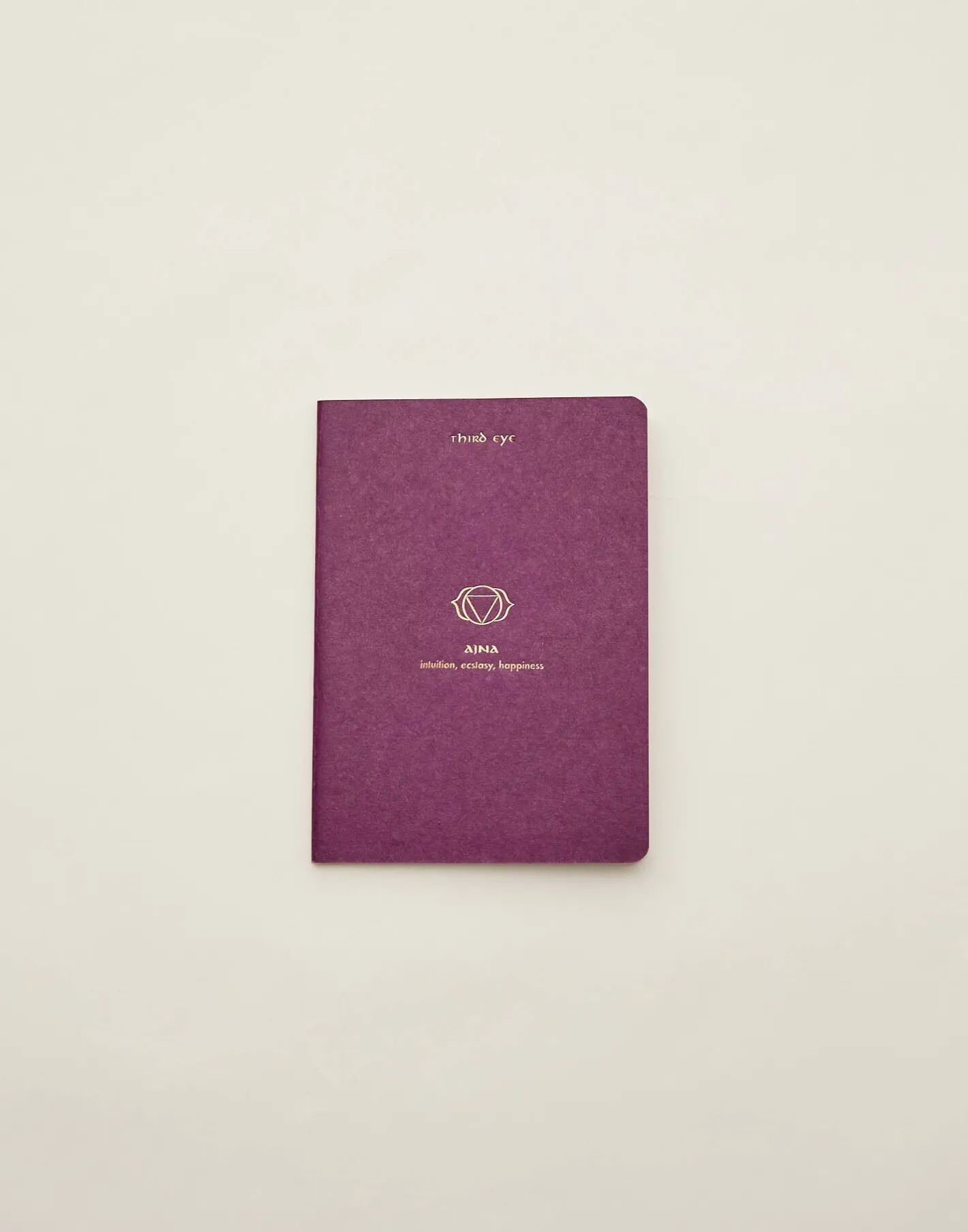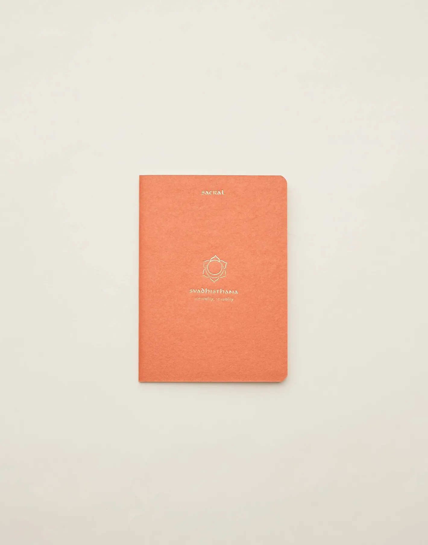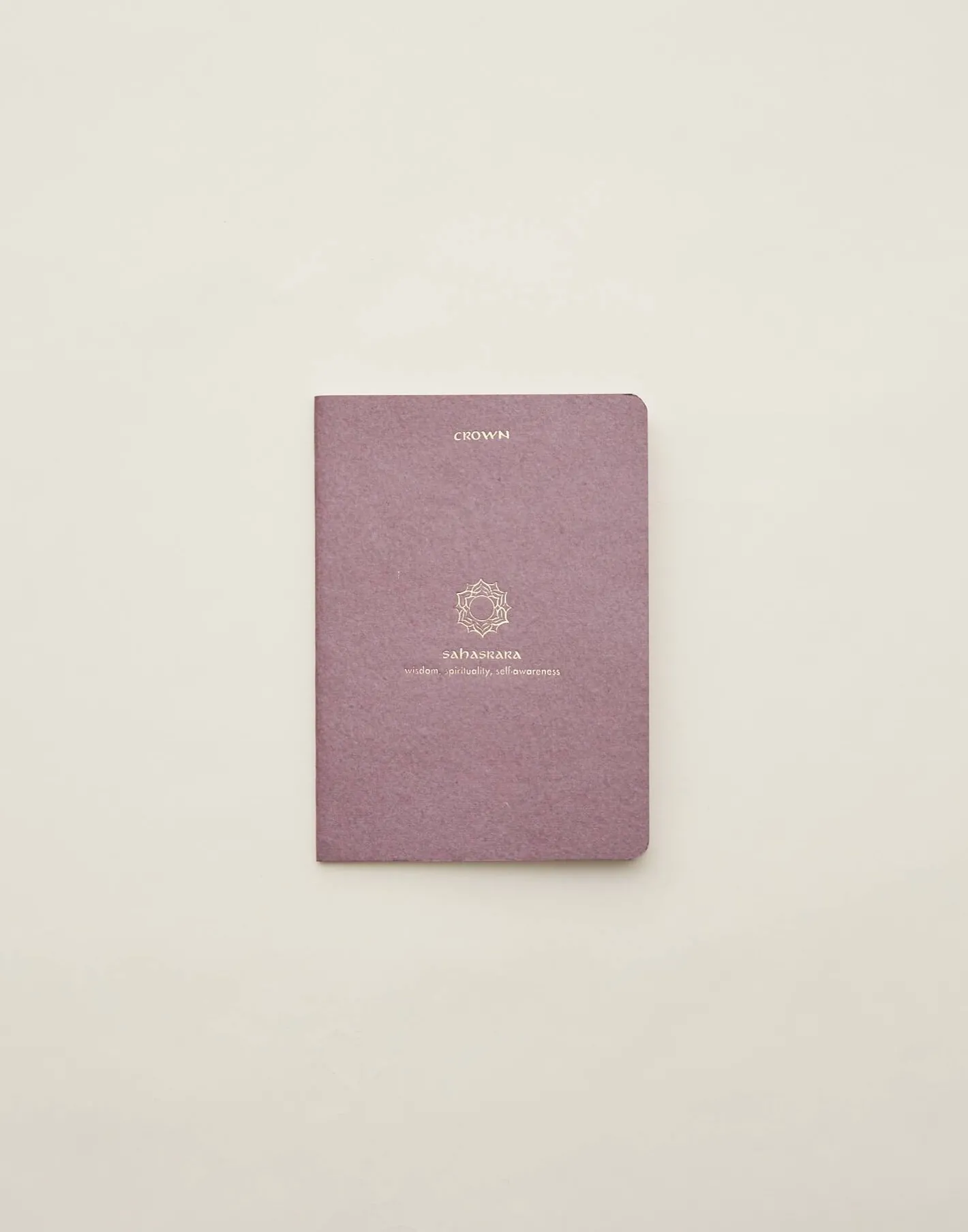 Cuaderno de tapa blanda con hojas en blanco y dibujo de chakra en la portada.