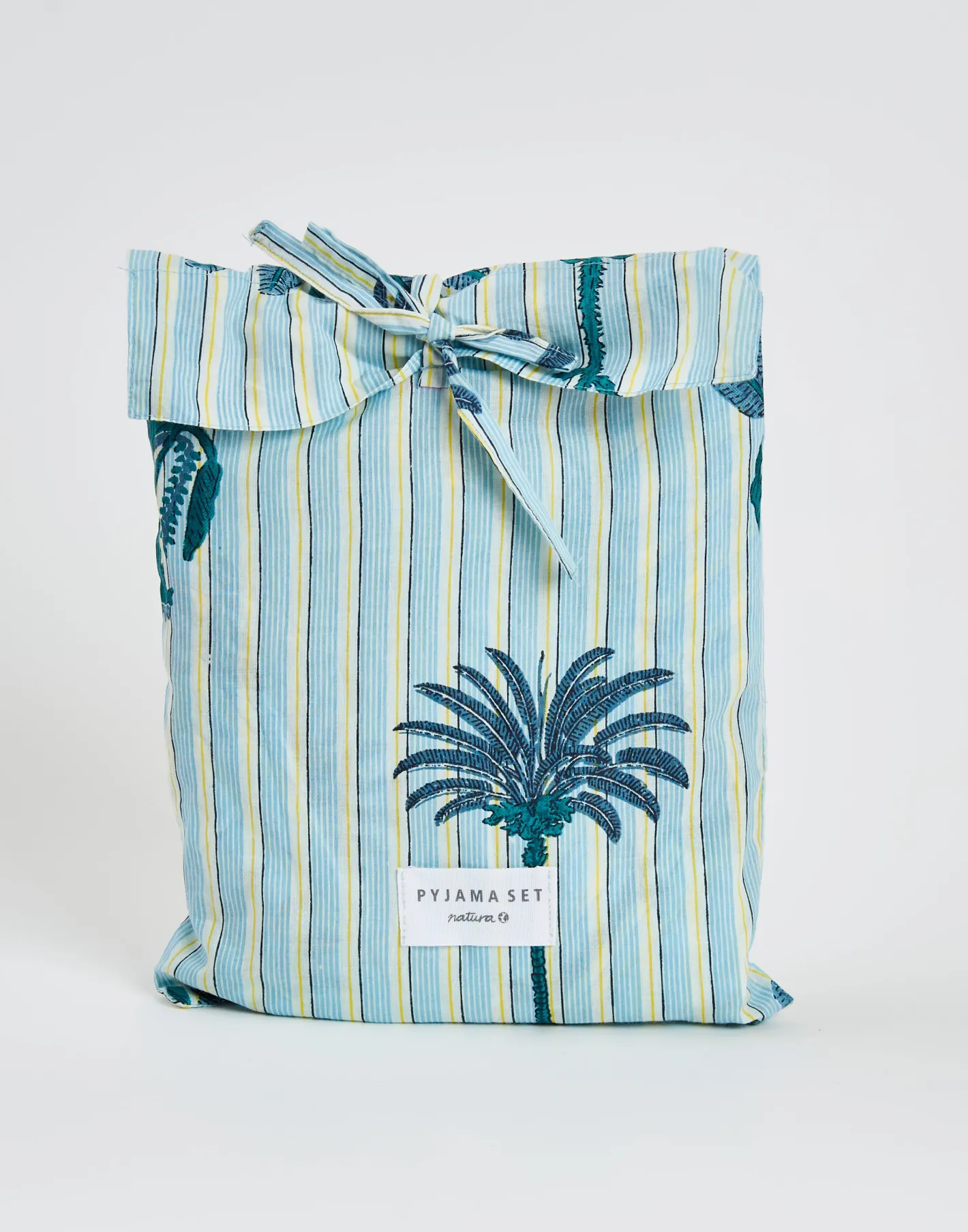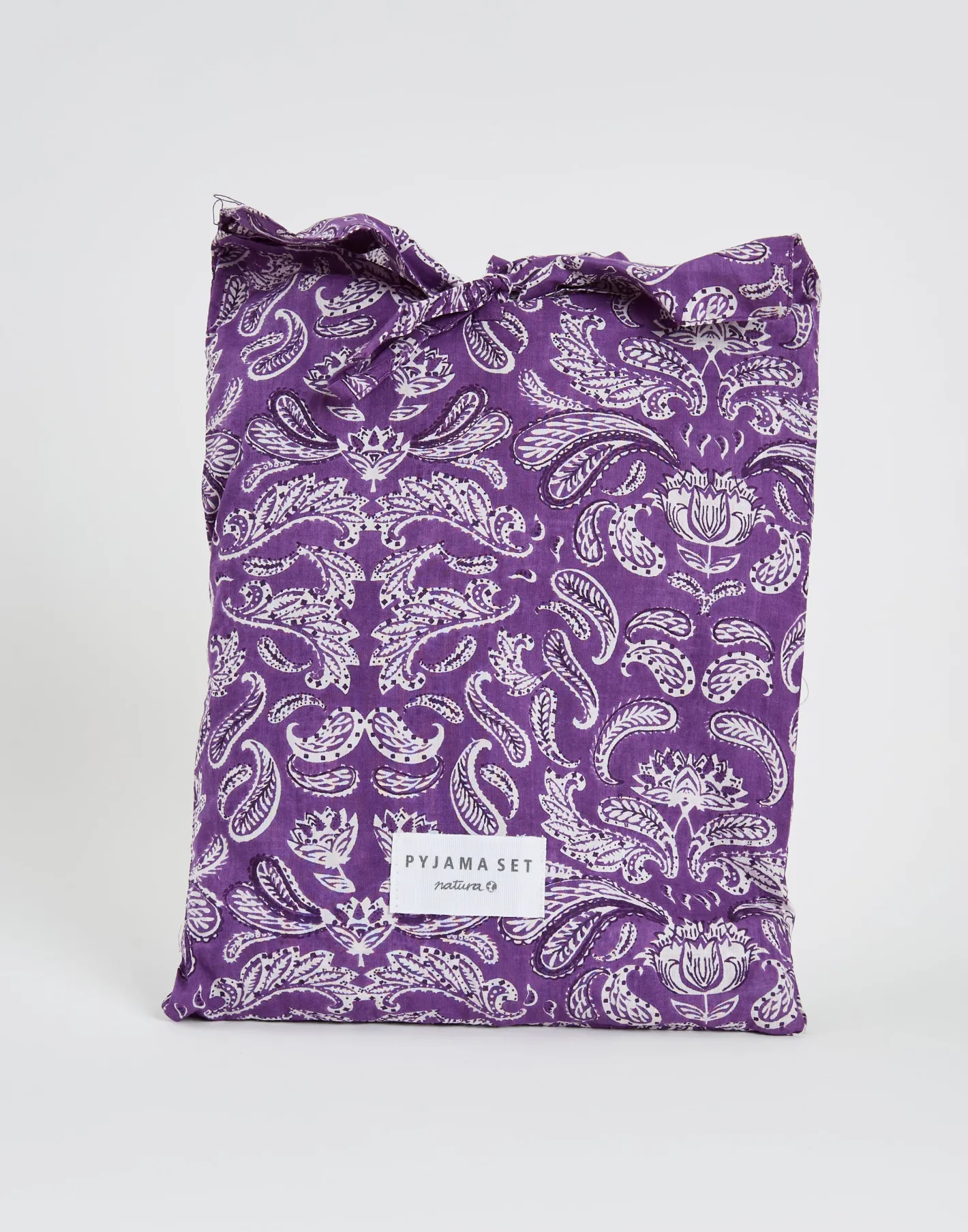 Set de pijama estampado compuesto por dos piezas: camisa de manga larga y pantalón largo.