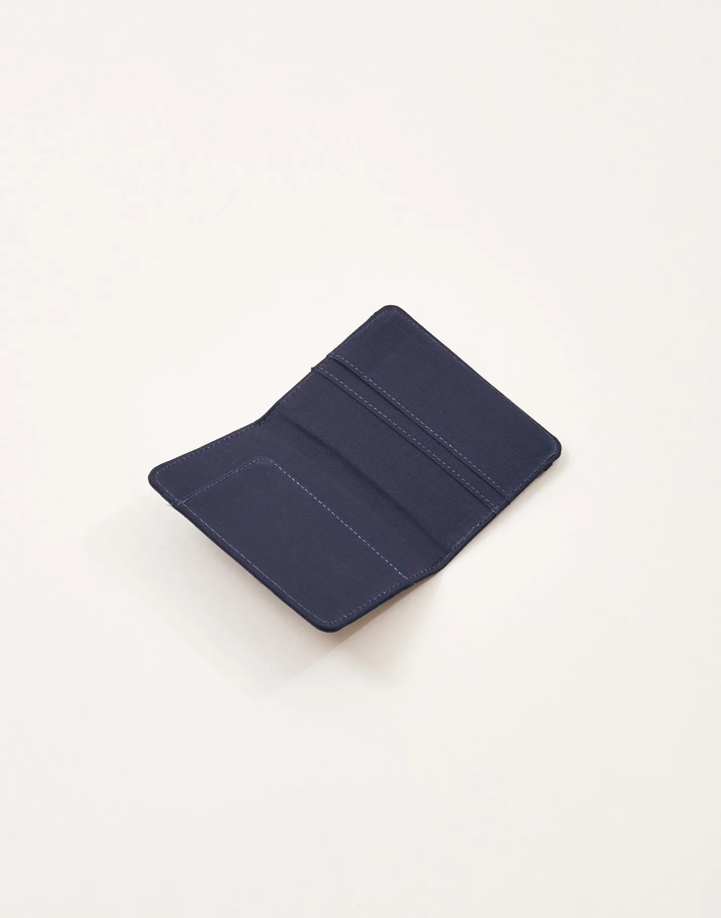 Pasaportera de algodón estampada, con espacio para colocar las cubiertas de tu pasaporte y llevarlo a salvo. Acabado con goma elástica.