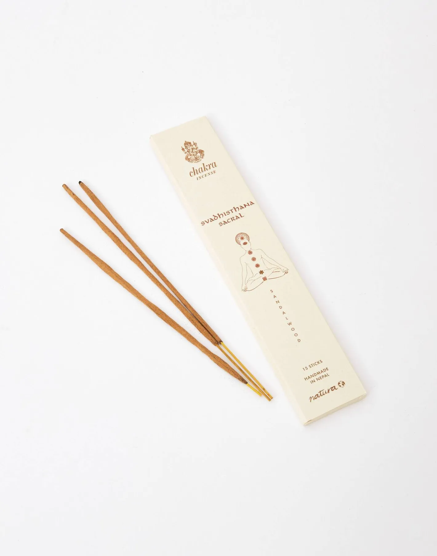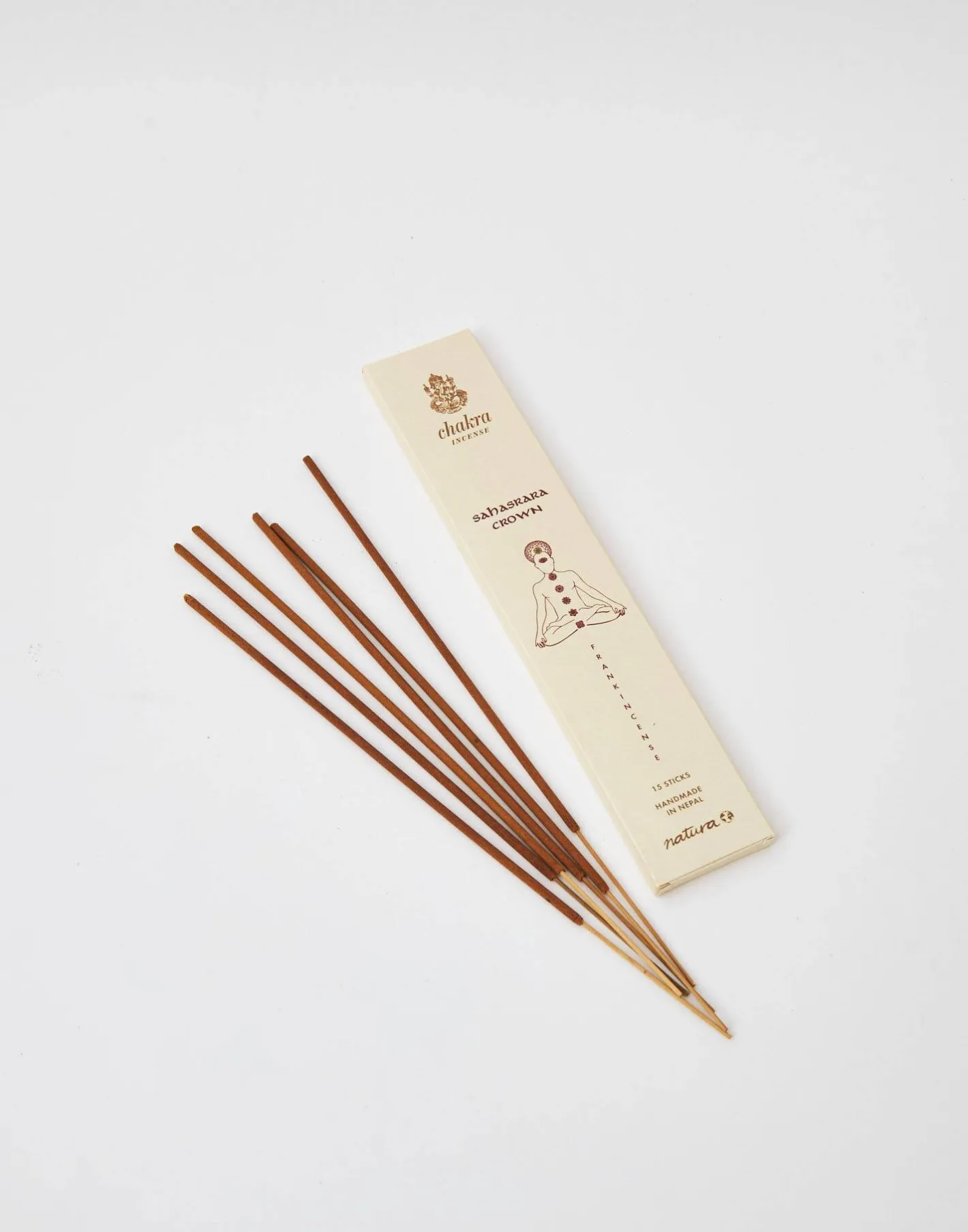 Colección de inciensos con 15 sticks, hechos a mano en Nepal. Cada chakra corresponde a un aroma determinado:
