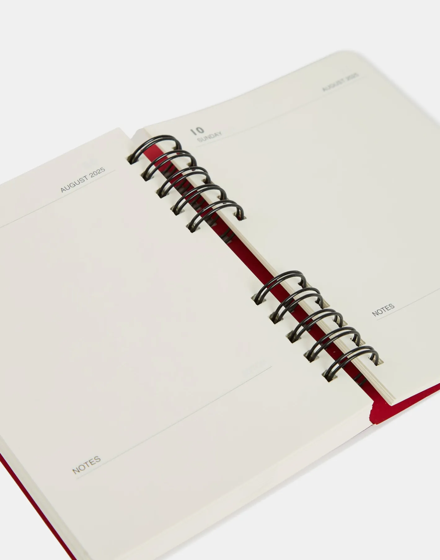 Agenda escolar con organización y visualización día por página, desde septiembre 2024 a septiembre 2025. Con espiral metálica, goma elástica y tapa dura.