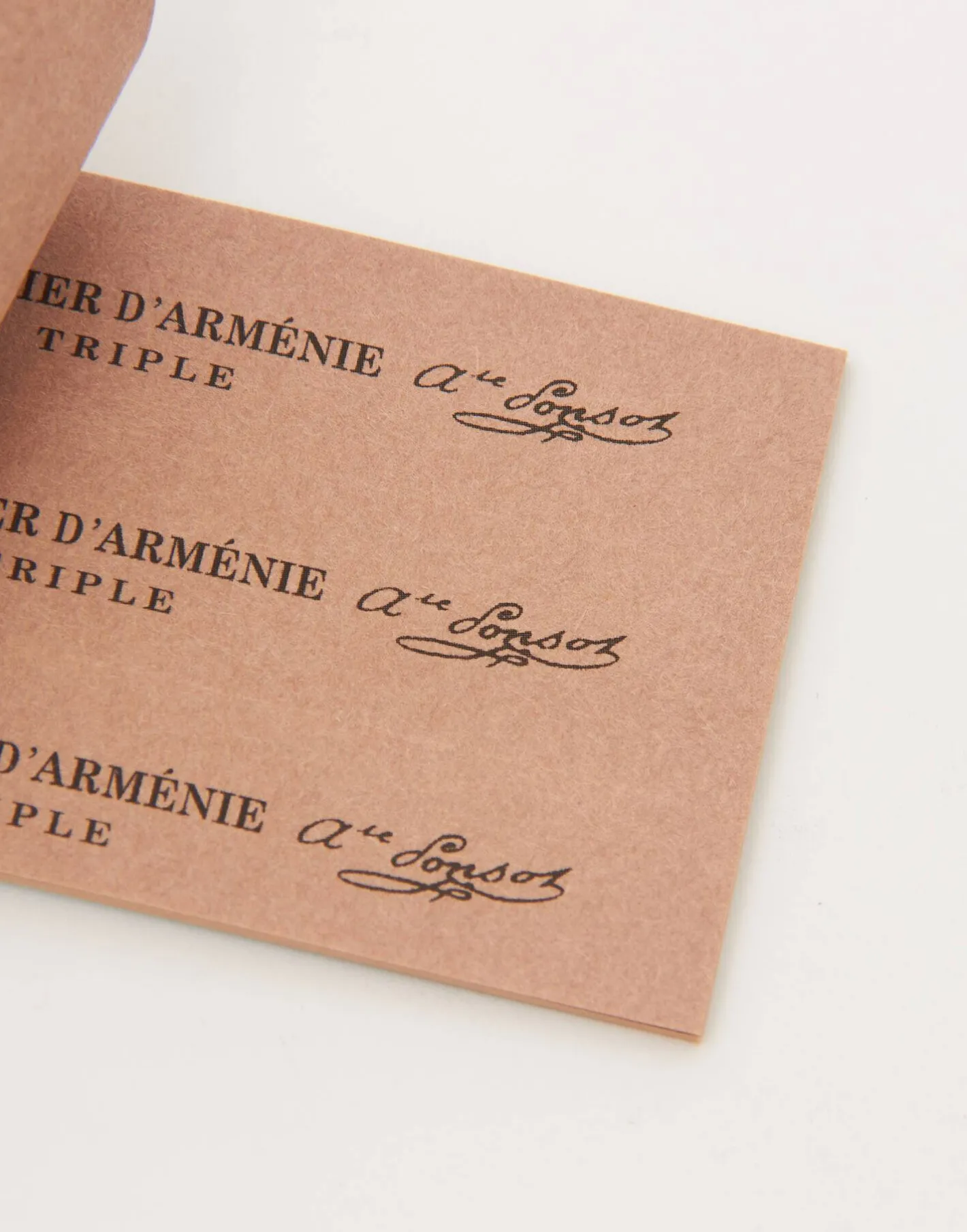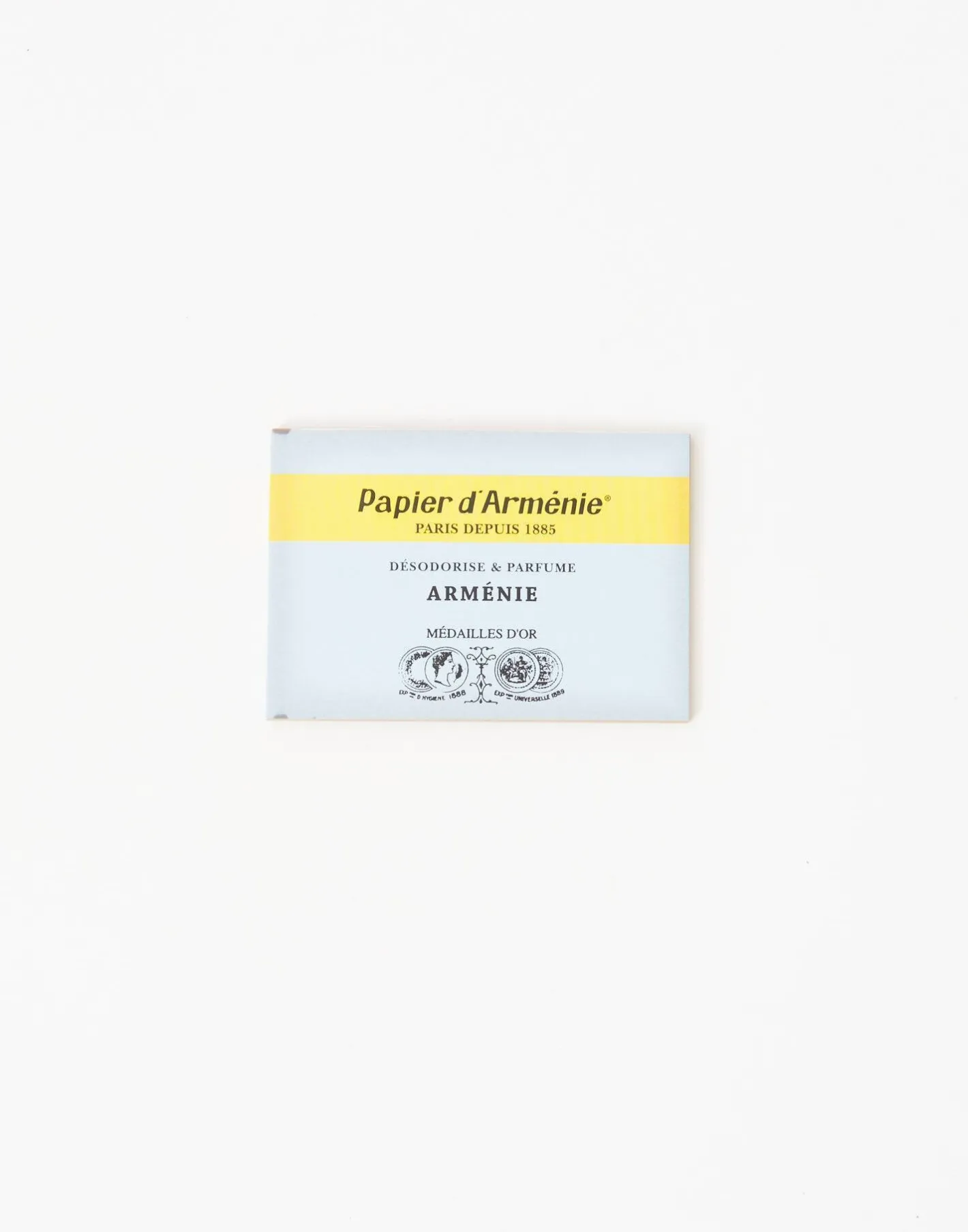 El papel de Armenia es el desodorizante natural más antiguo del planeta. Lo único que tienes que hacer es doblar una de sus láminas en forma de acordeón, quemarla y colocarla en un soporte resistente al calor. Conseguirás refrescar y purificar el ambiente de malos olores con su aroma a incienso y mirra con notas amaderadas y avainilladas. También puedes usarlo para perfumar armarios, cajones y maletas, colocando unas láminas en su interior.