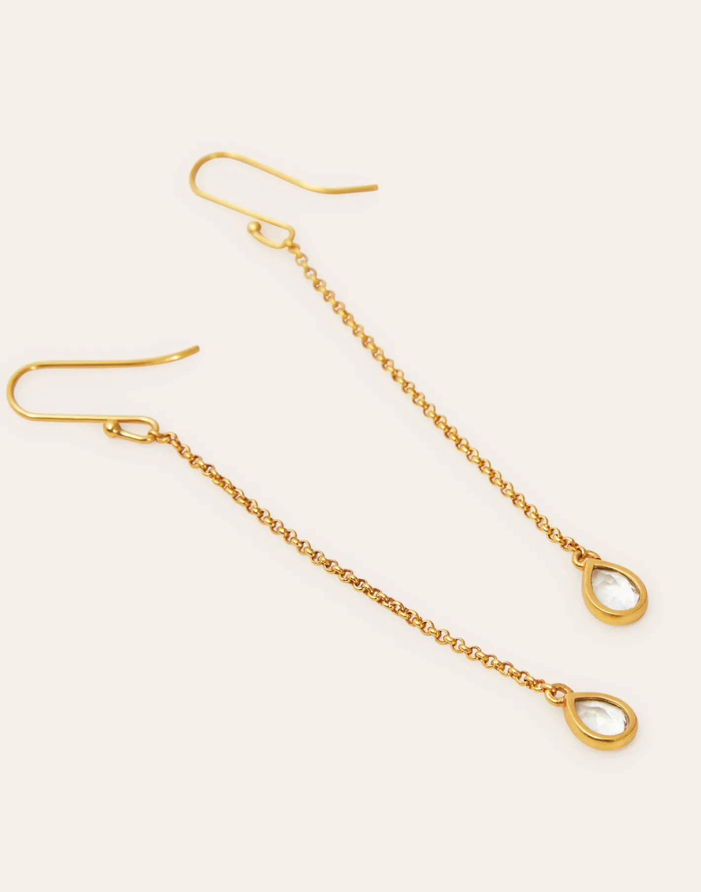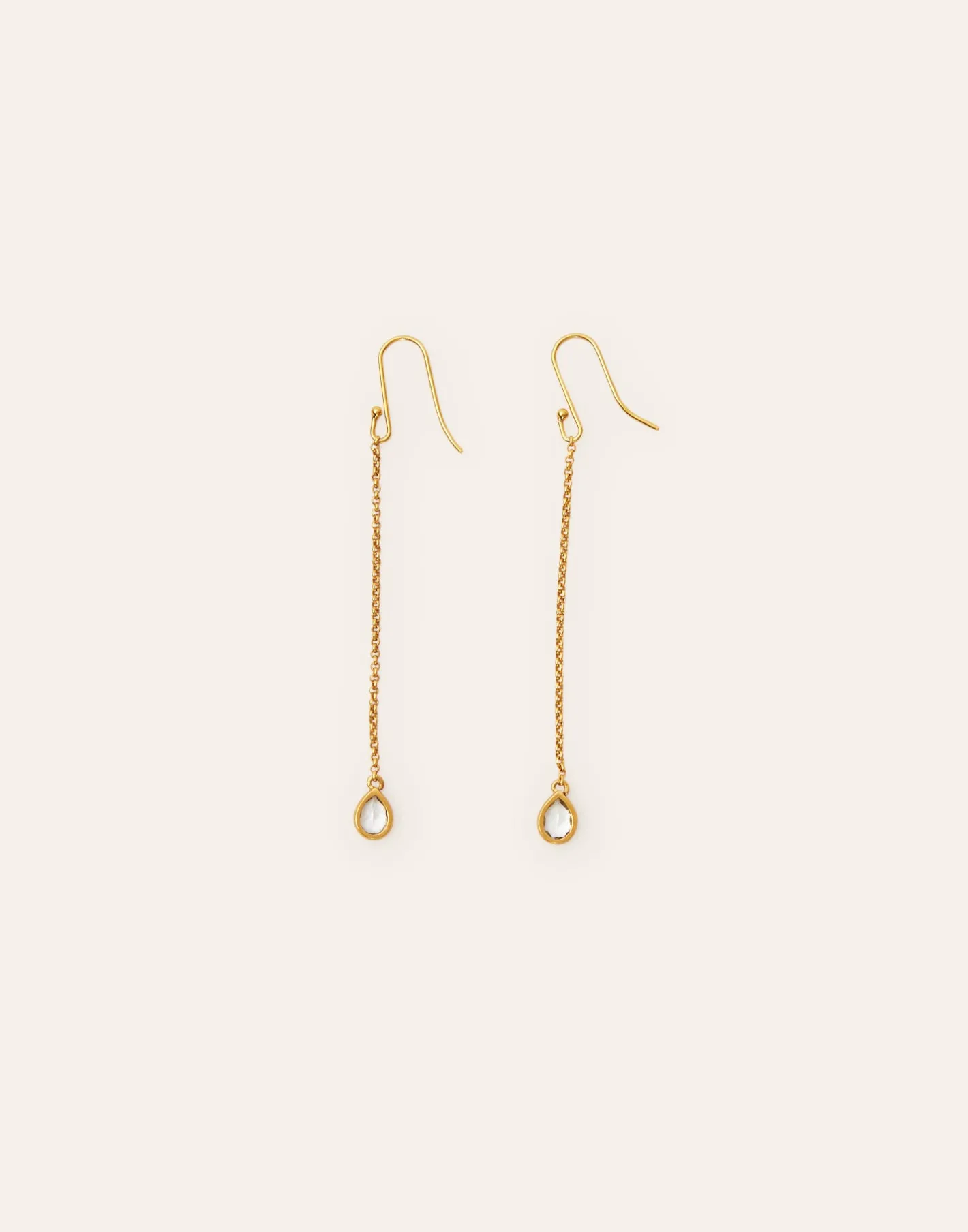 Pendientes largos de cadena con detalle de piedra. Cierre de gancho.