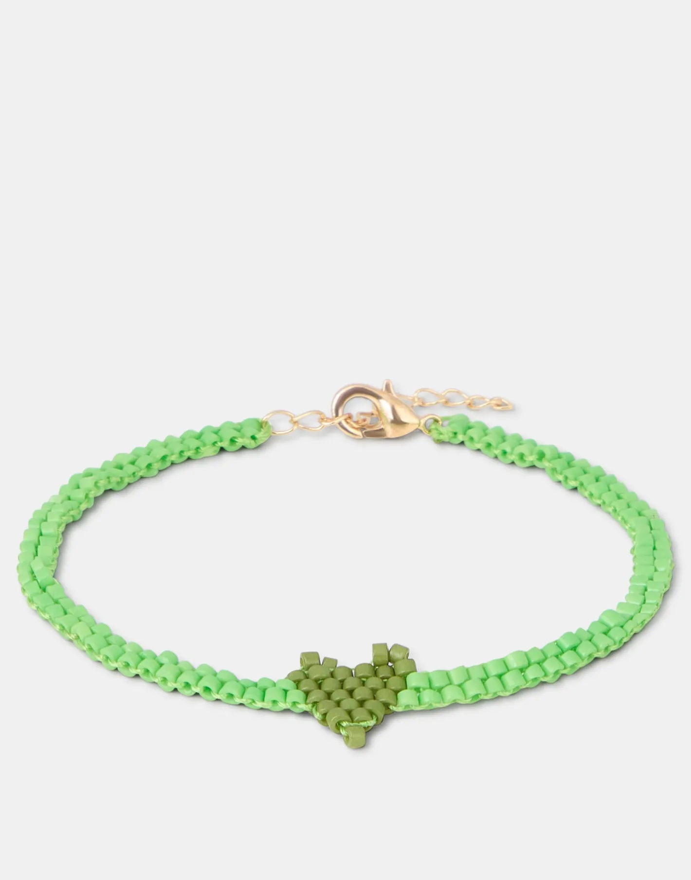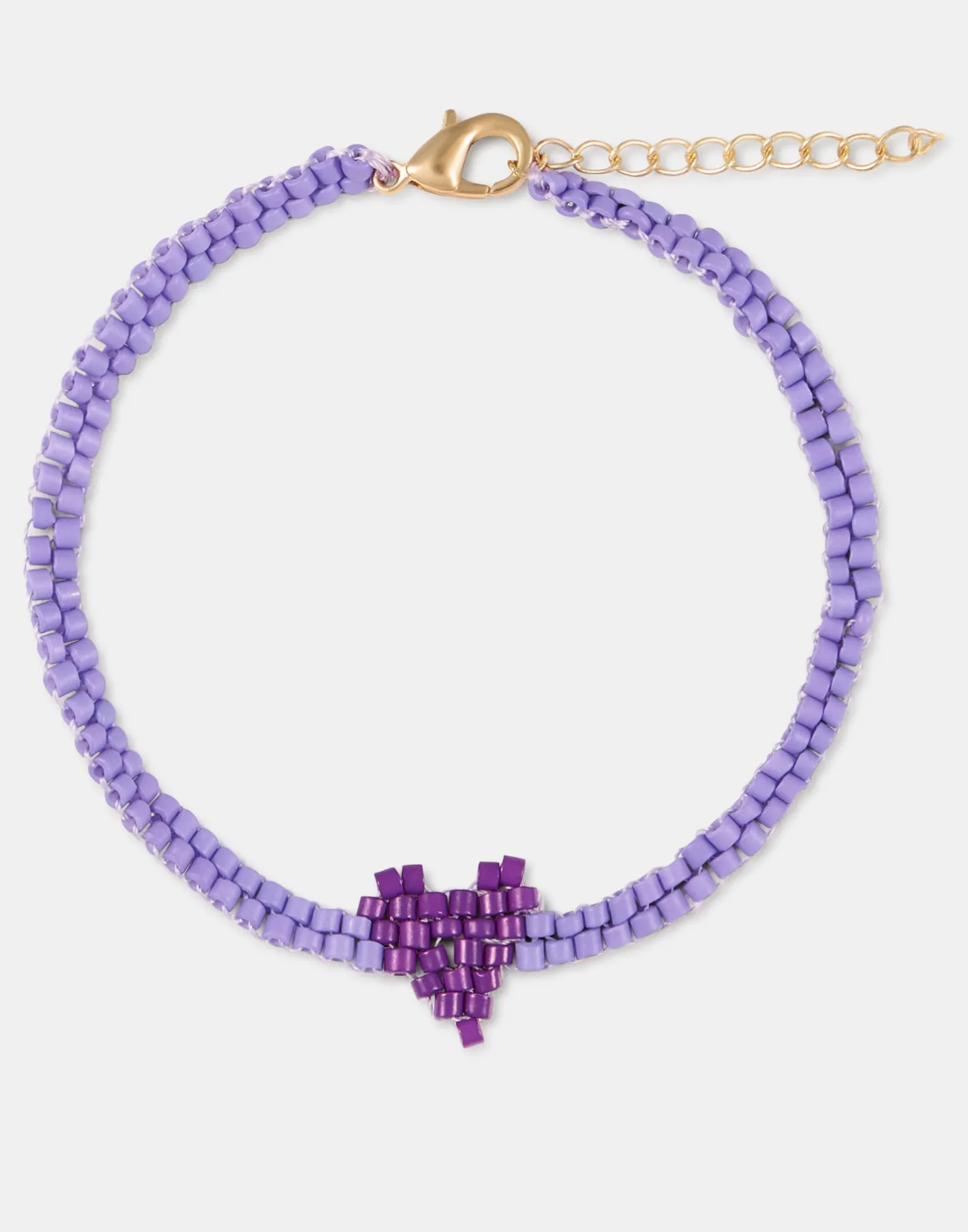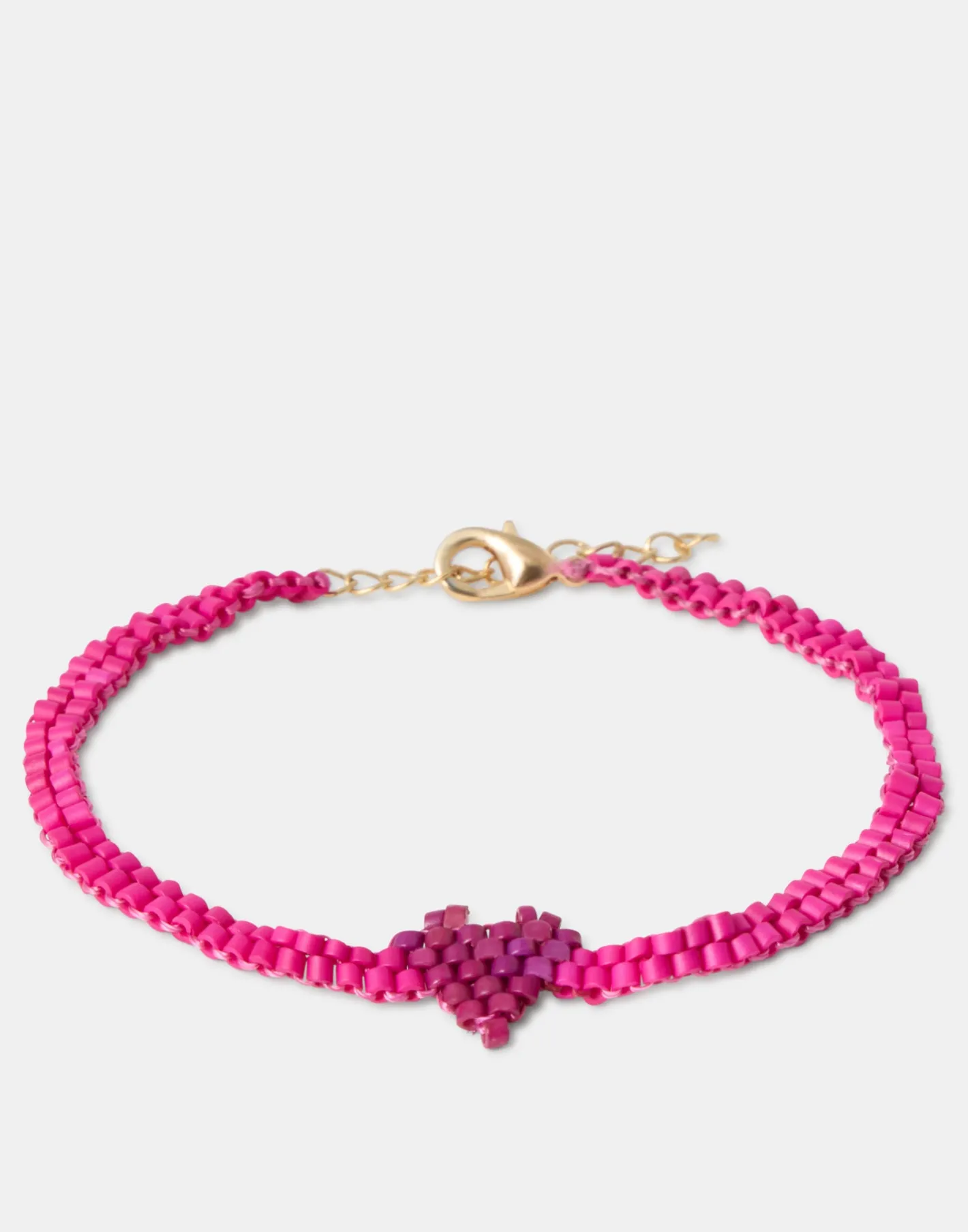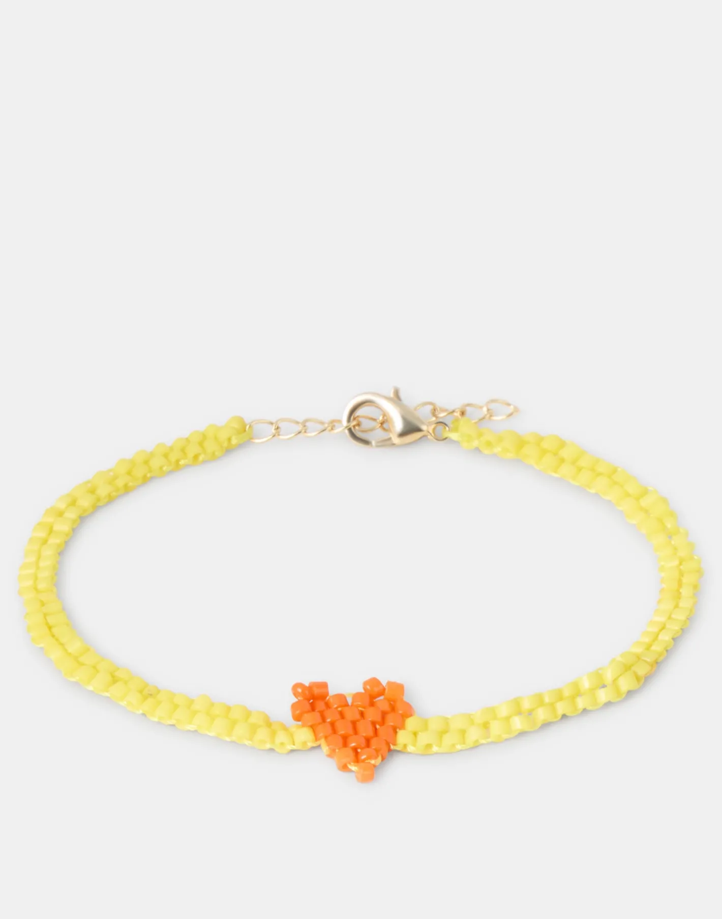 Pulsera con cuentas de colores y detalle en forma de corazón. Cierre de cadena ajustable con mosquetón.
