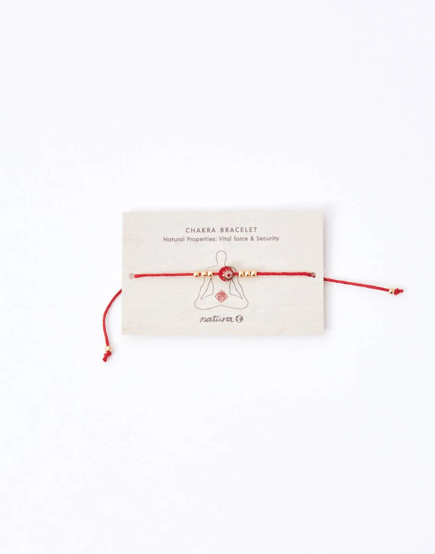 Pulsera de hilo con cuenta del color correspondiente a cada chakra y detalle de flor. Cierre de nudo corredizo.