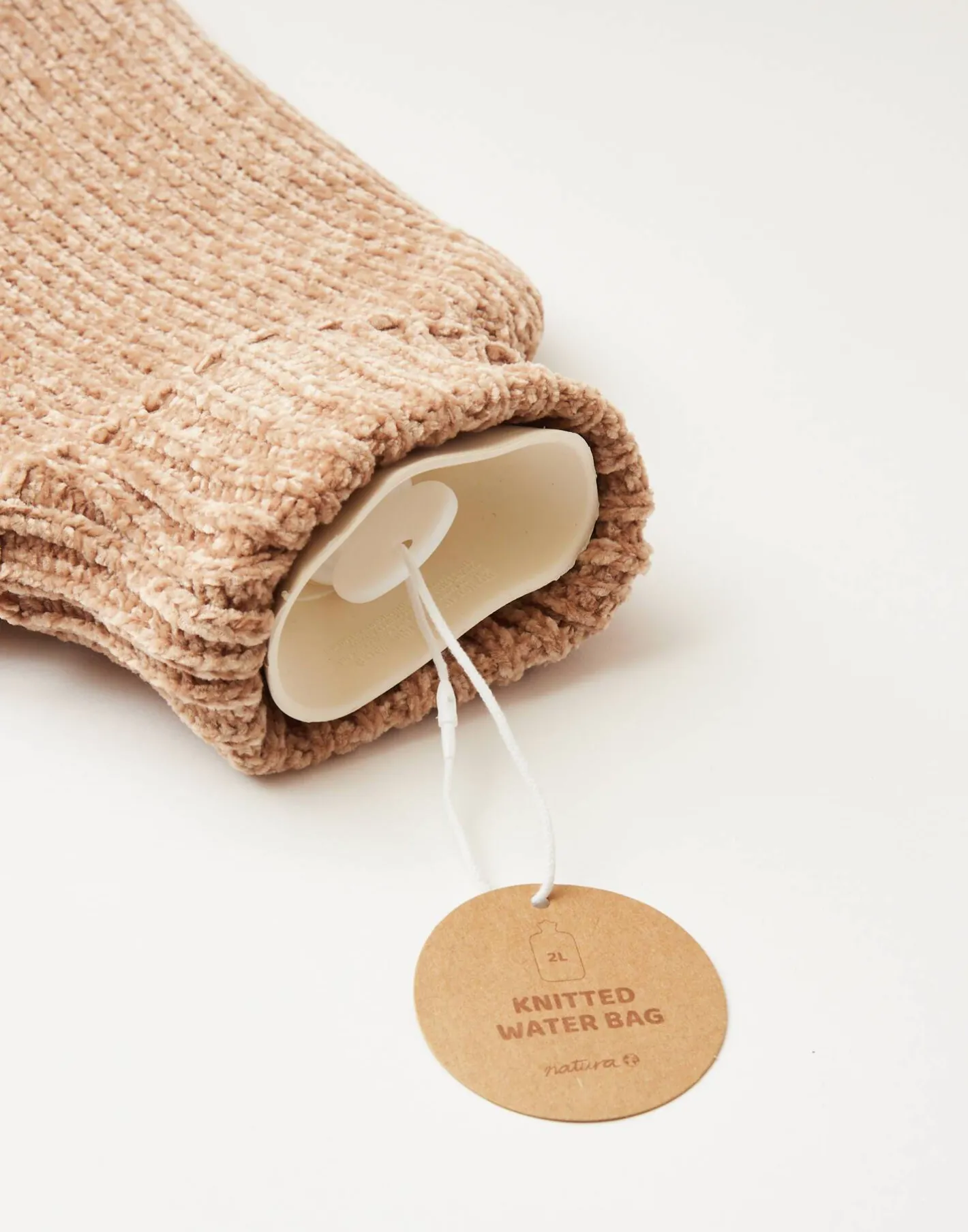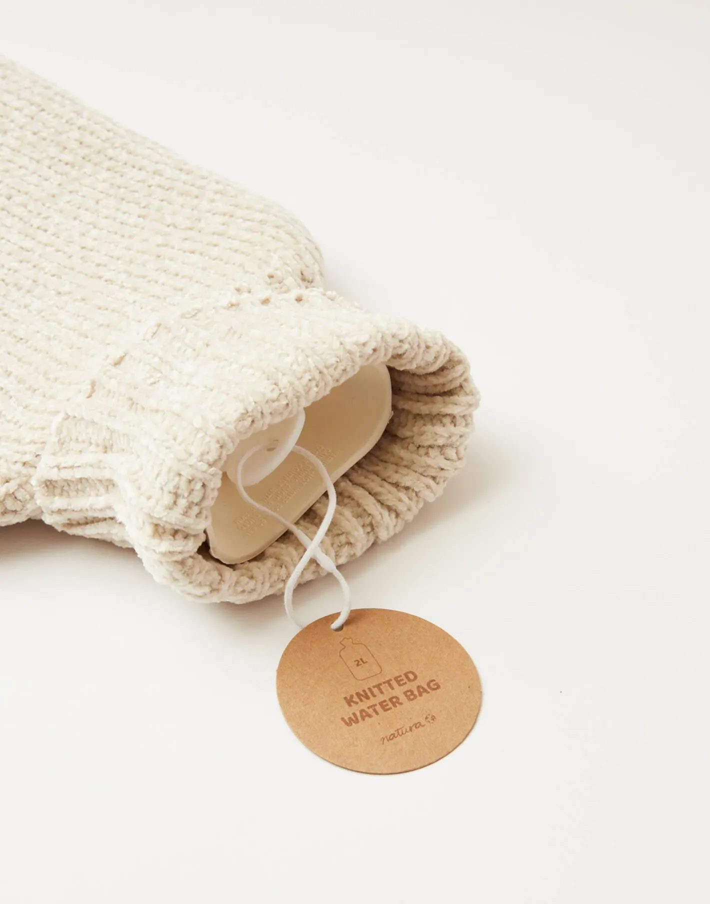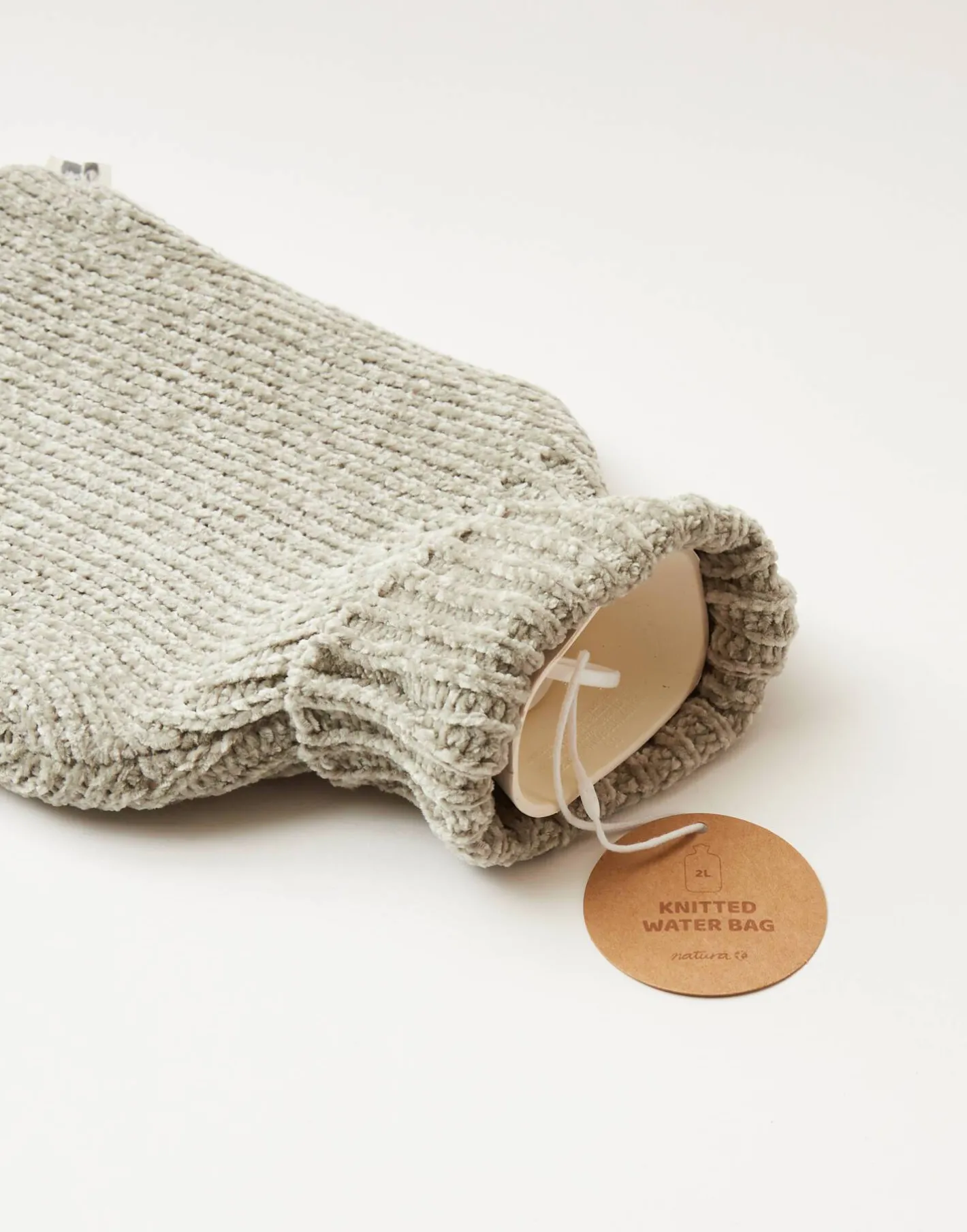 Botella de agua caliente con capacidad de 2 litros y funda de punto. Tu aliada para las frías noches de invierno o para calmar dolores.