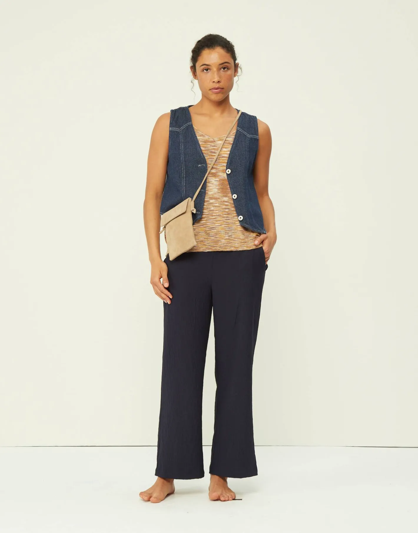 Bolso pequeño para llevar el teléfono, con solapa y cierre magnético. La cinta es larga para poder llevarlo cruzado.