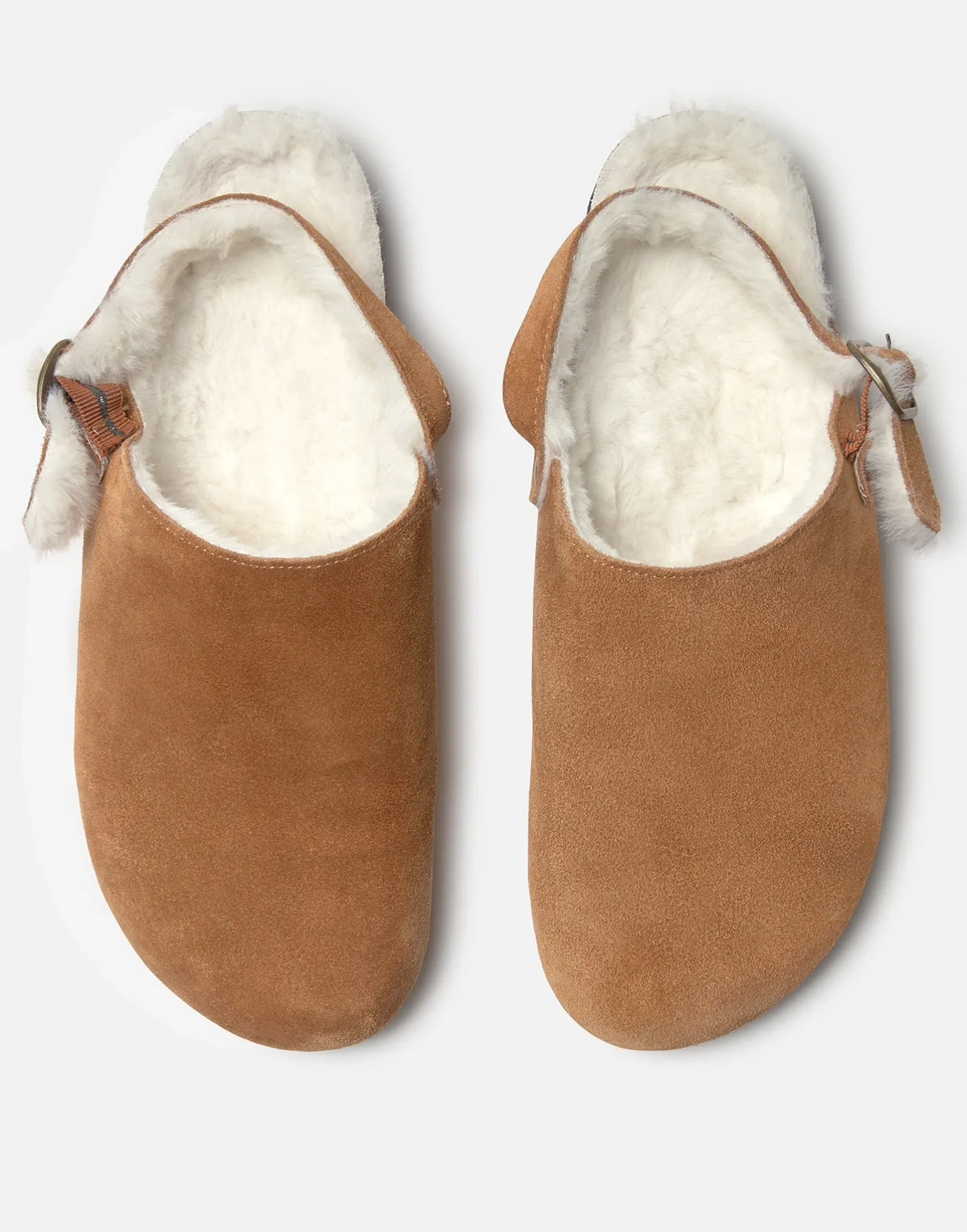 Zueco en piel y forro interior calentito. Con hebilla ajustable trasera y suela de corcho.