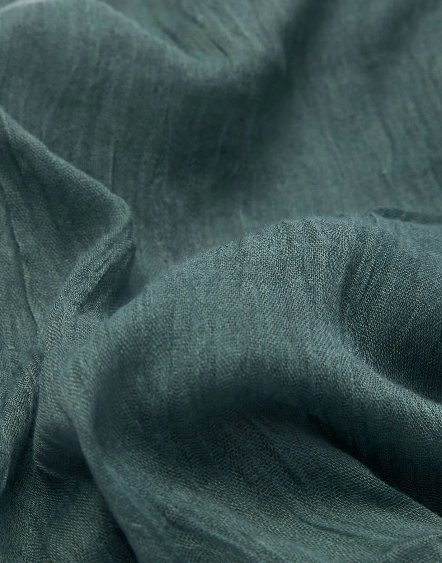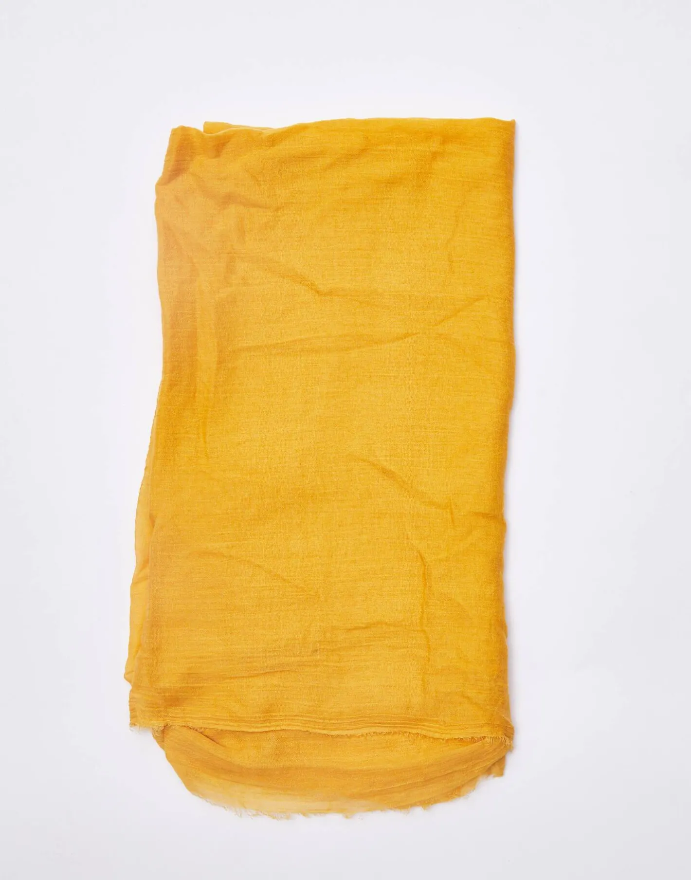 Pañuelo liso de tejido suave y terminaciones deshilachadas.