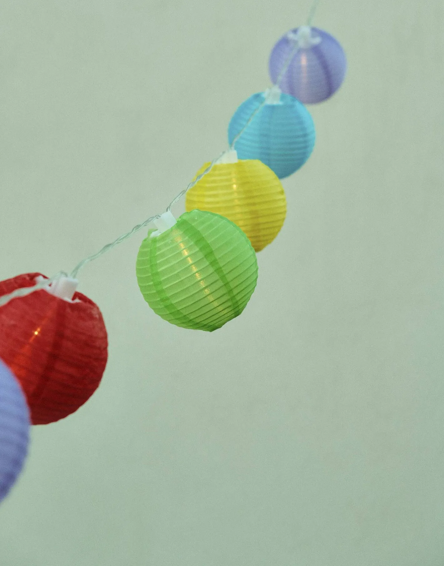 Una tira de luces es siempre una buena solución, tanto para iluminar tus espacios como para decorarlos. Esta tira de luces tiene 10 bolas de colores de luz LED y mide 2,35 metros.