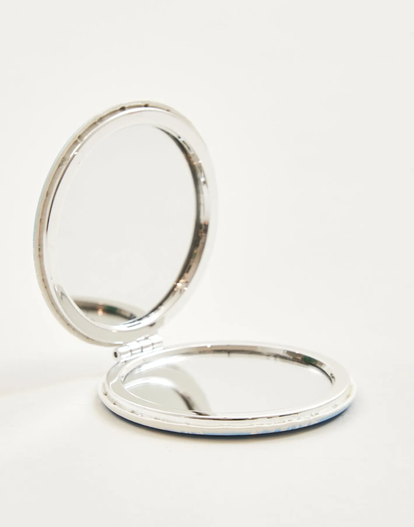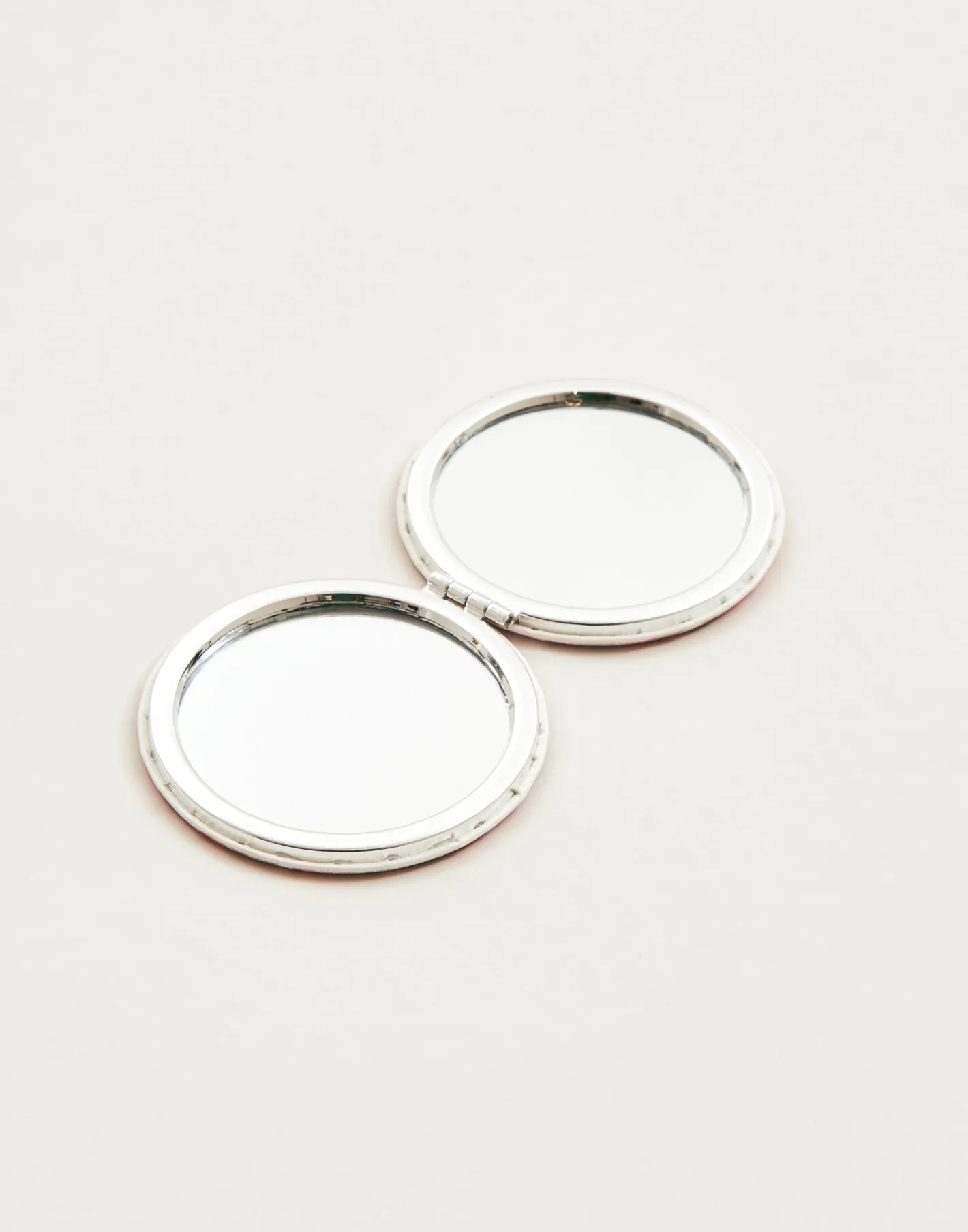 Espejo portátil de bolsillo con dos espejos: uno estándar y otro con aumento.