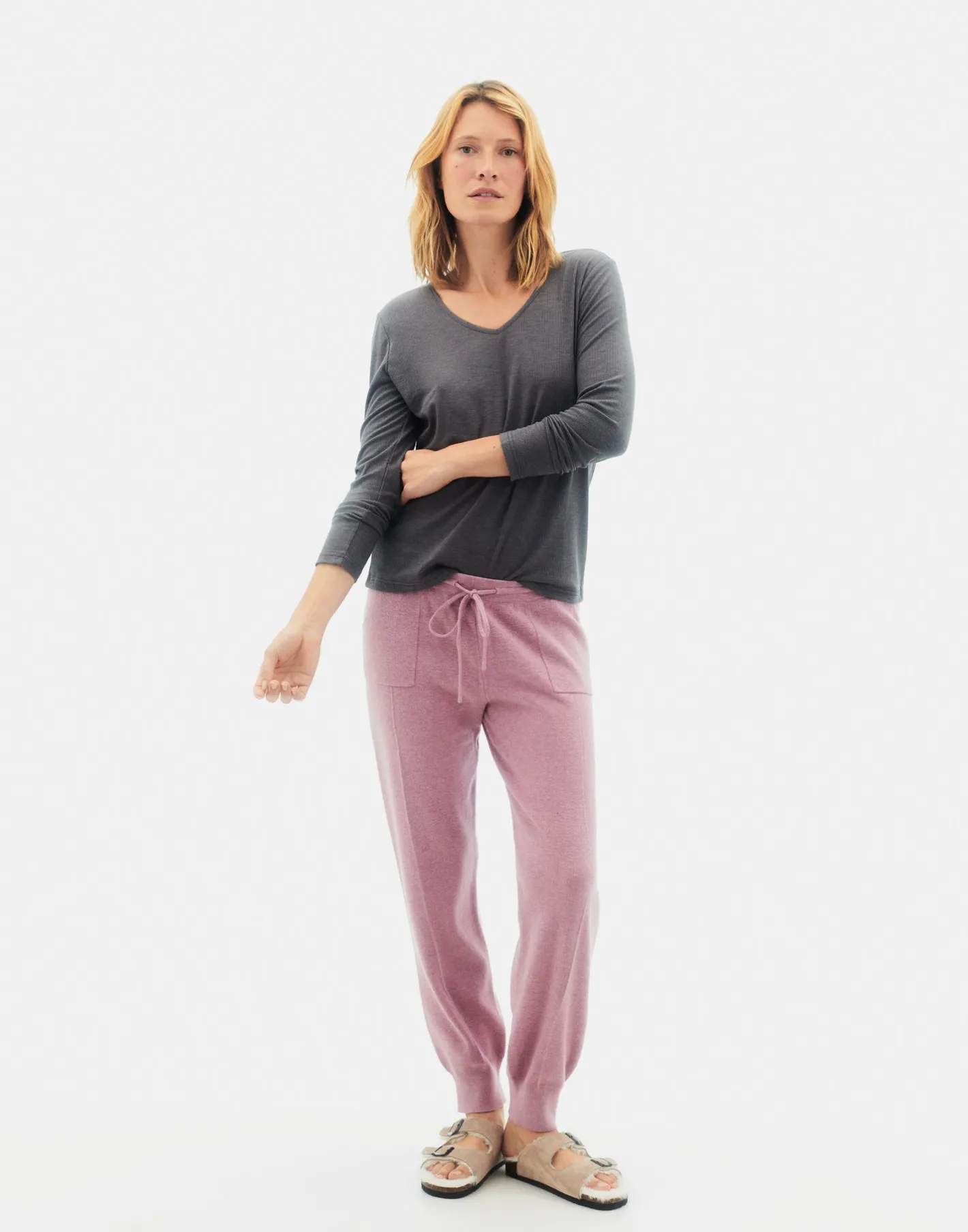 Pantalón largo de punto estilo jogger, con bolsillos de plastrón en la parte frontal, cintura elástica ajustable con cordón y bajo acabado en puño.